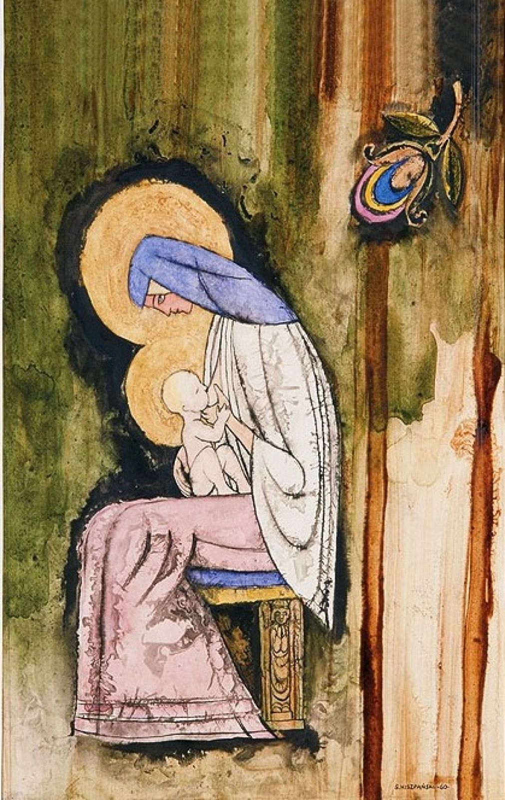– Na tej powierzchni można się albo pozabijać, albo bardzo kochać – mówił malarz. On stawiał na miłość. Okoliczności narodzin córki były dość dramatyczne, stworzył wtedy pierwszą kompozycję religijną – „Jezuska pod jabłoniami”, jako podziękowanie za szczęśliwy finał. Odtąd motywy religijne na stałe zagościły w jego twórczości. On sam mówił, że przeszedł drogę od ateizmu przez fascynację religiami Wschodu, aż do chrześcijaństwa. „Zyskałem przeświadczenie, że Bóg jest, że być musi, że organizuje i zna sprawy zarówno wszechświata, jak człowieka, robaczka czy trawki”, pisał.