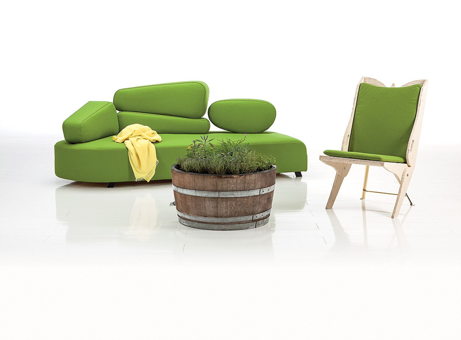 Na miarę. Projektowane z myślą o przeprowadzkach albo powiększaniu rodziny. Regulowane oparcie, podnoszone zagłówki – to banał. Mosspink ma niskie podparcie złożone z kilku niby-otoczaków, które można do woli przekładać: grupować jedne na drugich lub ustawiać grzecznie w rządku. Z kolei sofę Chess, inspirowaną szachami, złożymy w literę L, szezlong czy tradycyjny narożnik. Albo rozbijemy na dwa fotele. Nie mówiąc o modelach, do których sami dobierzemy tkaninę – inną na oparcie, inną na siedzisko. Słowem, Kati wciąga nas w projektowanie, to my ostatecznie decydujemy, na czym chcemy siedzieć.