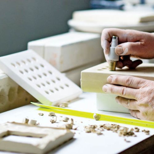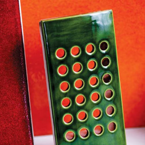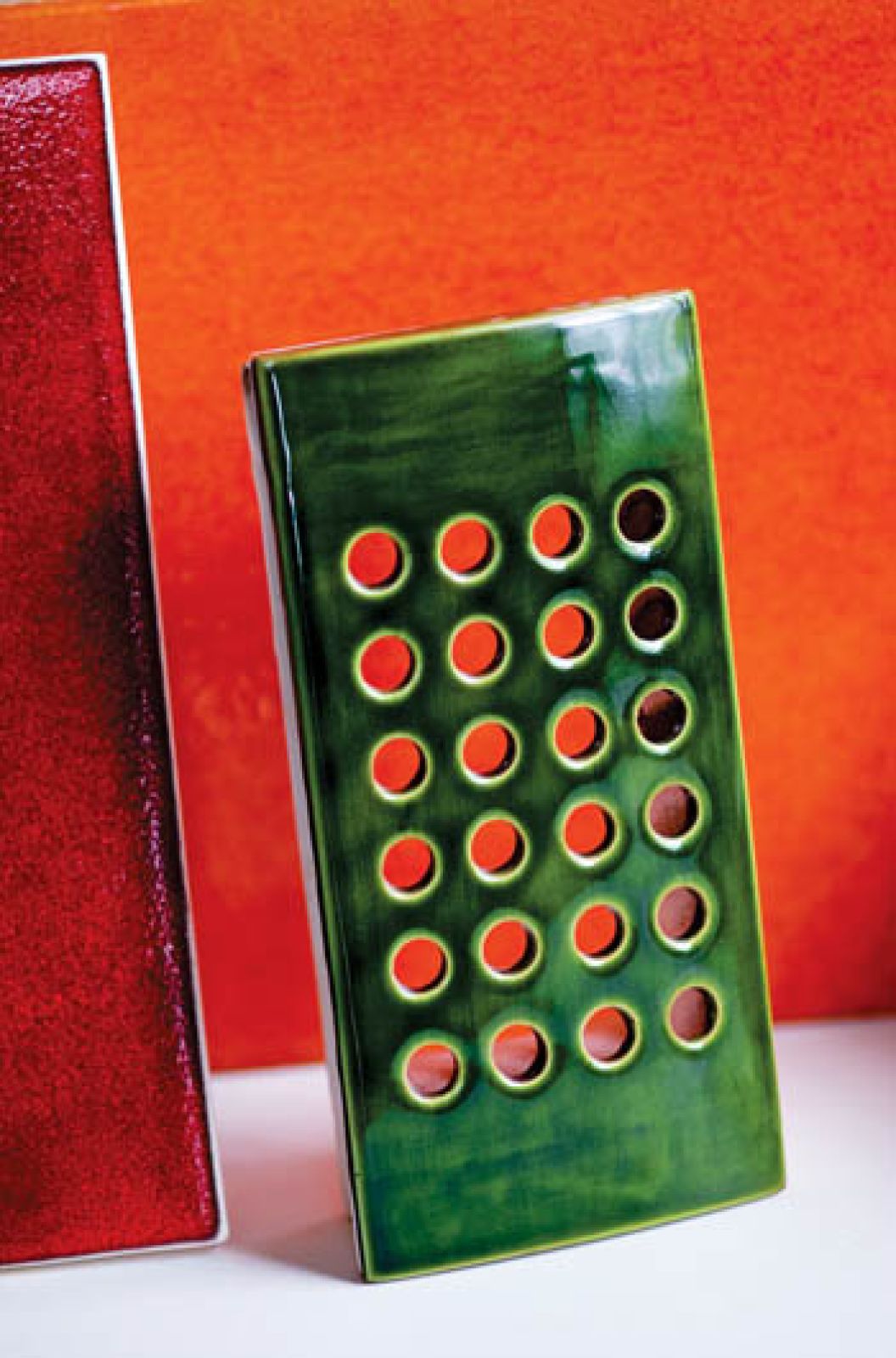 W pracowni pani Krystyny wszędzie unosi się biały pył. Na parapetach i podłodze stoją kule przypominające wulkaniczne planety z „Małego Księcia”. Na półkach, jak książki w bibliotece, kafle. Tu z wzorem secesyjnego drzewa, tam z koronkową serwetką, za które dostała nagrodę Prodeco. Zaprojektowała ich dziesiątki: do pieców, na ściany i fasady budynków. Ma też półeczki, gzymsy, cokoły, nawet kratki wentylacyjne, przypominające ceramiczną biżuterię. Białe, zielone, kobaltowe, pomarańczowe, czerwone. Te ostatnie kolory najtrudniej uzyskać, bo szkliwo szybko wypala się na brąz. Jeszcze gorsze są róże i żółcie, pod wpływem temperatury błyskawicznie robią się bure. W ogóle barwienie przypomina magiczny seans. Na surowym szkliwie maluje się tlenkami. Nie widać wtedy koloru. – Trzeba sobie wyobrazić, jaki będzie po wypaleniu – zdradza artystka. – Czasem udaje się od razu, a czasem za kolejnym podejściem.