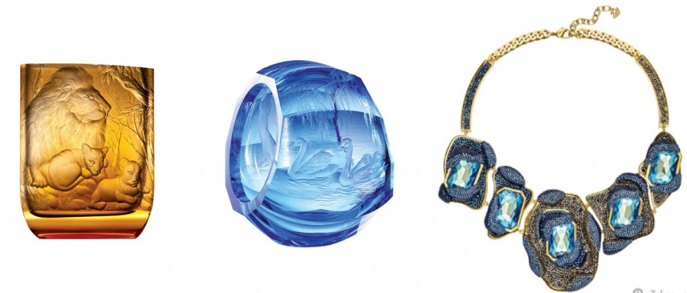 Wazon z motywem lwów i naczynie do ikebany z motywem łabędzia, naszyjnik Svarowski