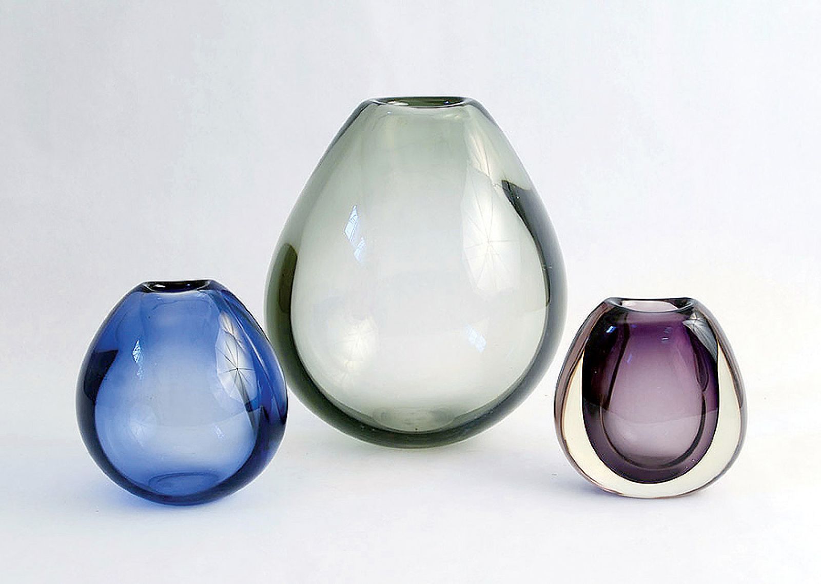 Ciągle eksperymentował z kolorem. Na przykład Rondo to trzy wazony z szarobłękitnego grubego szkła: najmniejszy w kształcie kuli, większy jajowaty i duży mocno spłaszczony. Proste i bardzo ciężkie. Z kolei Umanak (od nazwy góry na Grenlandii, która przypomina kształtem serce) ma fioletową barwę, a misa Provence jest szlachetnie zielona. Można by tak wyliczać godzinami.