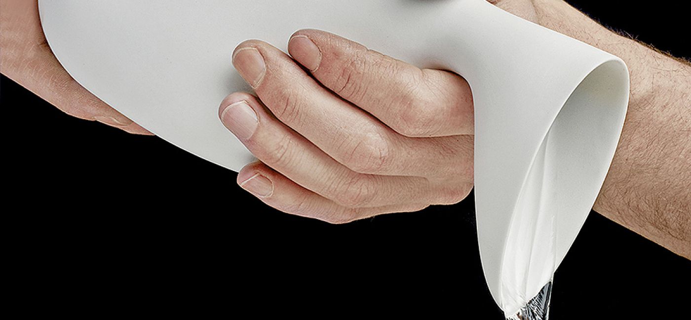 Potrafi miesiącami pracować nad małą solniczką, udoskonalać jej formę i polerować powierzchnię. Na znak protestu przeciw cywilizacji, która wytwarza dużo, szybko i często byle jak. Efekt? Jubilerski majstersztyk: potrząsamy delikatnie czymś, co przypomina minipatelnię i sól wysypuje się ze srebrnej rączki na platerowany złotem „język”. Inny przykład: karafka do wody. Choć wykonana z porcelany, wydaje się miękka niczym bukłak i przylega do dłoni tak, jakby nigdy się z nią nie rozstawała.