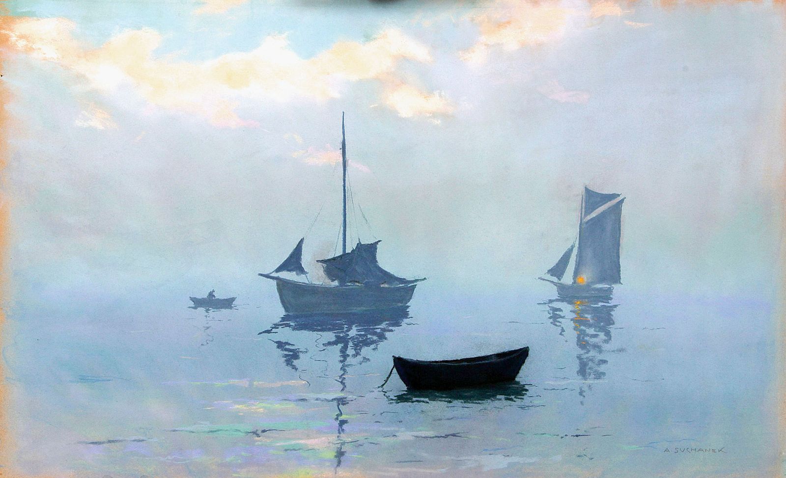 Spiętrzone, załamujące się fale i widmowe statki w burzy uczyniły z Antoniego Suchanka czołowego polskiego marynistę. On sam twierdził, że jest malarzem kwiatów i kobiet.