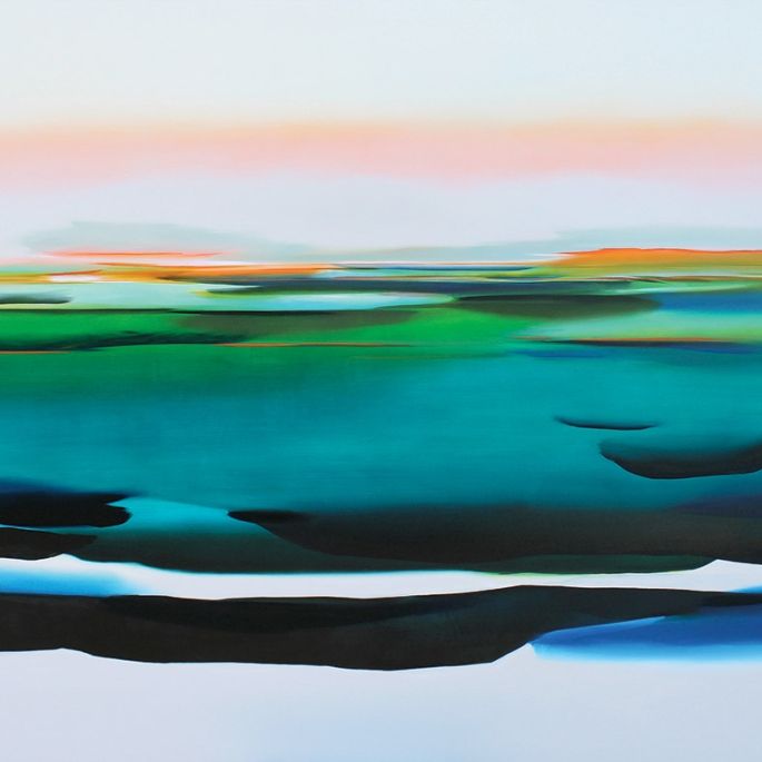 Coś pomiędzy albo dwa w jednym (śmiech). Odbiorcy często widzą w moich pracach znajome, konkretne miejsca w Polsce czy w innych krajach. Moja przyjaciółka dostrzega w niektórych widoki z Suwalszczyzny, a ja nigdy w życiu tam nie byłam. Kreślę na obrazie linię, rodzaj horyzontu, który malarsko ustawia mi środek ciężkości obrazu. Styk różnych plam barwnych buduje wrażenie przestrzenności. Powstaje przestrzeń, w której każdy może sobie coś własnego wyobrazić i wymyślić.