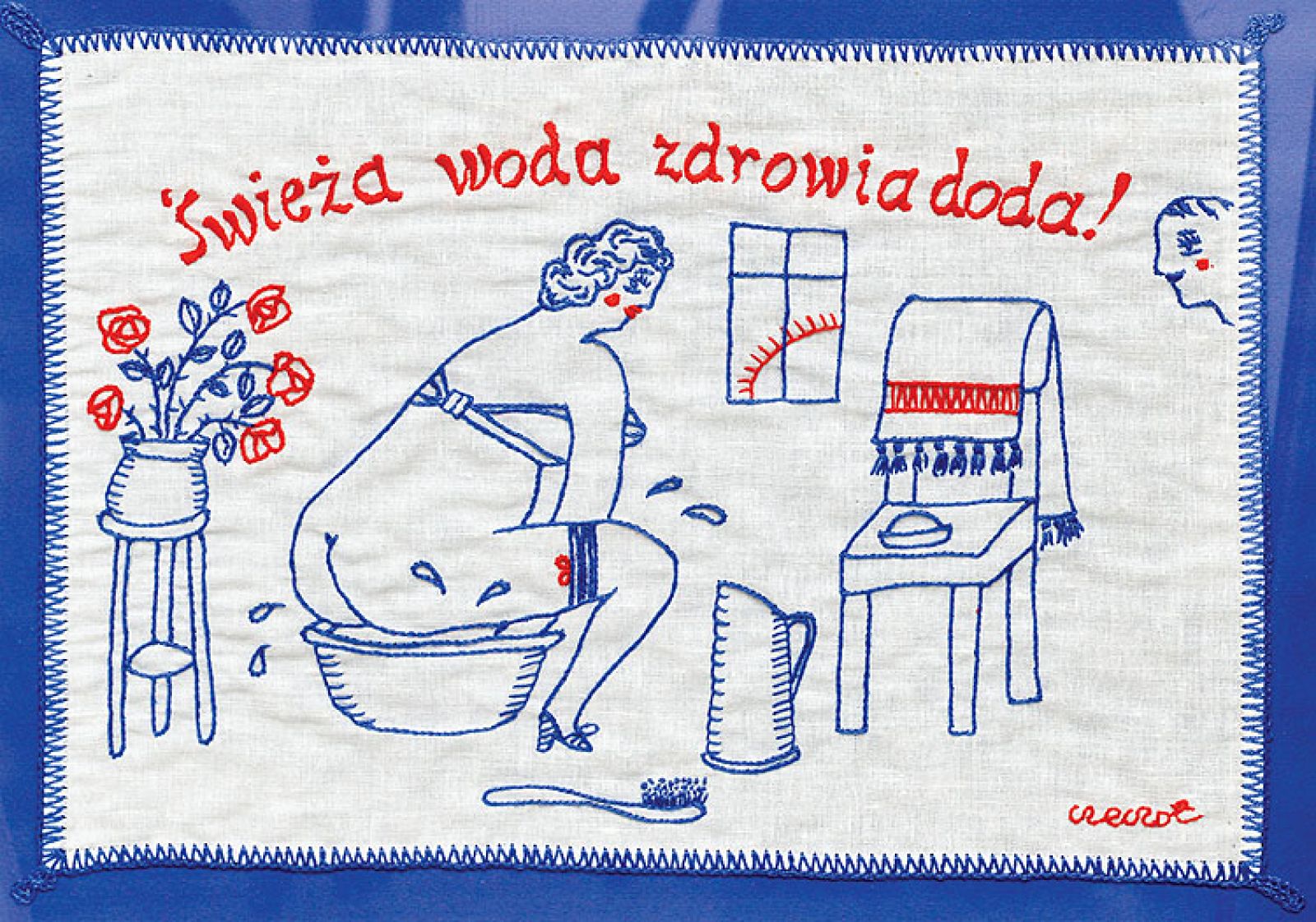 Suplementem do jego twórczości rysunkowej stały się… makatki. Wiele lat przed powszechnym zainteresowaniem kiczem wymyślił imitacje ludowych haftów opatrzonych umoralniająco-naiwnymi sentencjami. Nazywano je – jakżeby inaczej! – „czeczotkami”. Na pierwszy rzut oka nie różniły się od autentycznych, jarmarcznych: białe płótno, niezdarny haft kolorowym kordonkiem, nad nim koślawy napis. W istocie „czeczotki” były antytezą swojskich mądrości. Największą furorę zrobił haft z dobrą żoną, która „tym się chlubi, że gotuje, jak mąż lubi” – a on, świntuch, lubi ją na golasa, w samym fartuszku.