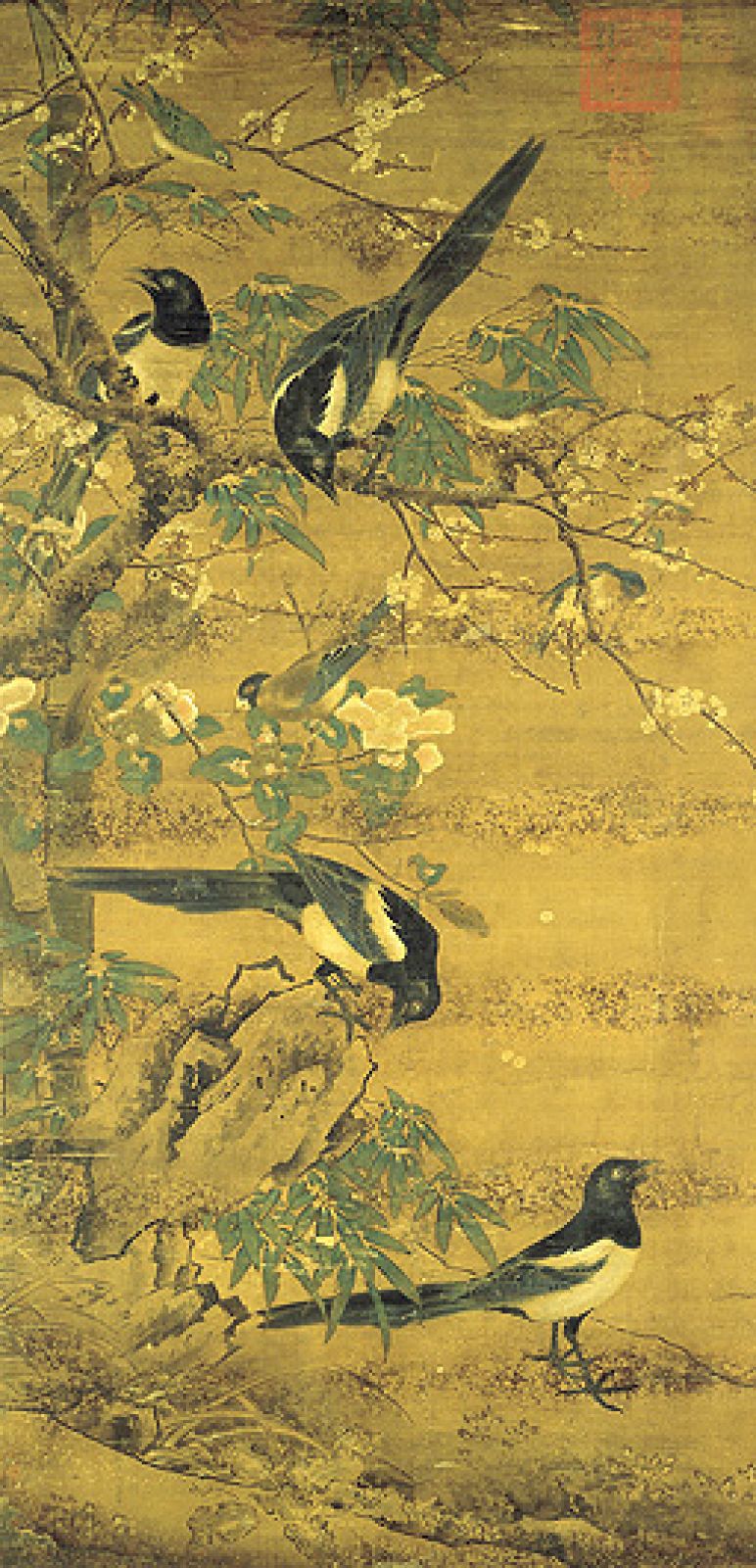 Choć trudno nam to sobie wyobrazić, większość artystów nigdy nie malowała człowieka, bo światem była przyroda, a ludzie jedynie tłem. Z czasem przybywało też amatorów tylko jednego motywu. Zajmowali się na przykład bambusem albo rakami czy górą. Tematem samograjem była kwitnąca śliwa. Symbolizowała niewinność i dziewictwo, poza tym zapowiadała utęsknioną wiosnę. Ale ceniono też sosnę, bo jest wiecznie zielona, magnolie, peonie, przypisując im symboliczne znaczenia.