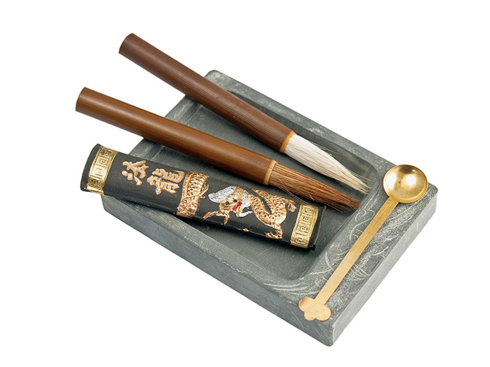 Używała takich samych narzędzi. Chińczycy nazywają je „Czterema skarbami”. Pierwszy to pędzelek z króliczego włosia osadzony w cienkiej bambusowej rurce. Wyjątkowo miękki, a po zwilżeniu układający się w idealny szpic. Drugi – tusz w sztabce, który robi się z sadzy drzew iglastych i odrobiny kleju. Kiedyś dla zapachu dodawano do niego piżmo, dzisiaj – goździki. Trzeci – kamień do rozcierania tuszu. I wreszcie jedwab albo papier – cieńszy, grubszy, w różnym stopniu chłonący wilgoć. Z czasem do tego zestawu dołączył „piąty skarb” czyli farby, coś jak nasze akwarele. Aby ocenić ich jakość, chiński malarz nie robił jednak testów na papierze, tylko próbował, jak smakują!