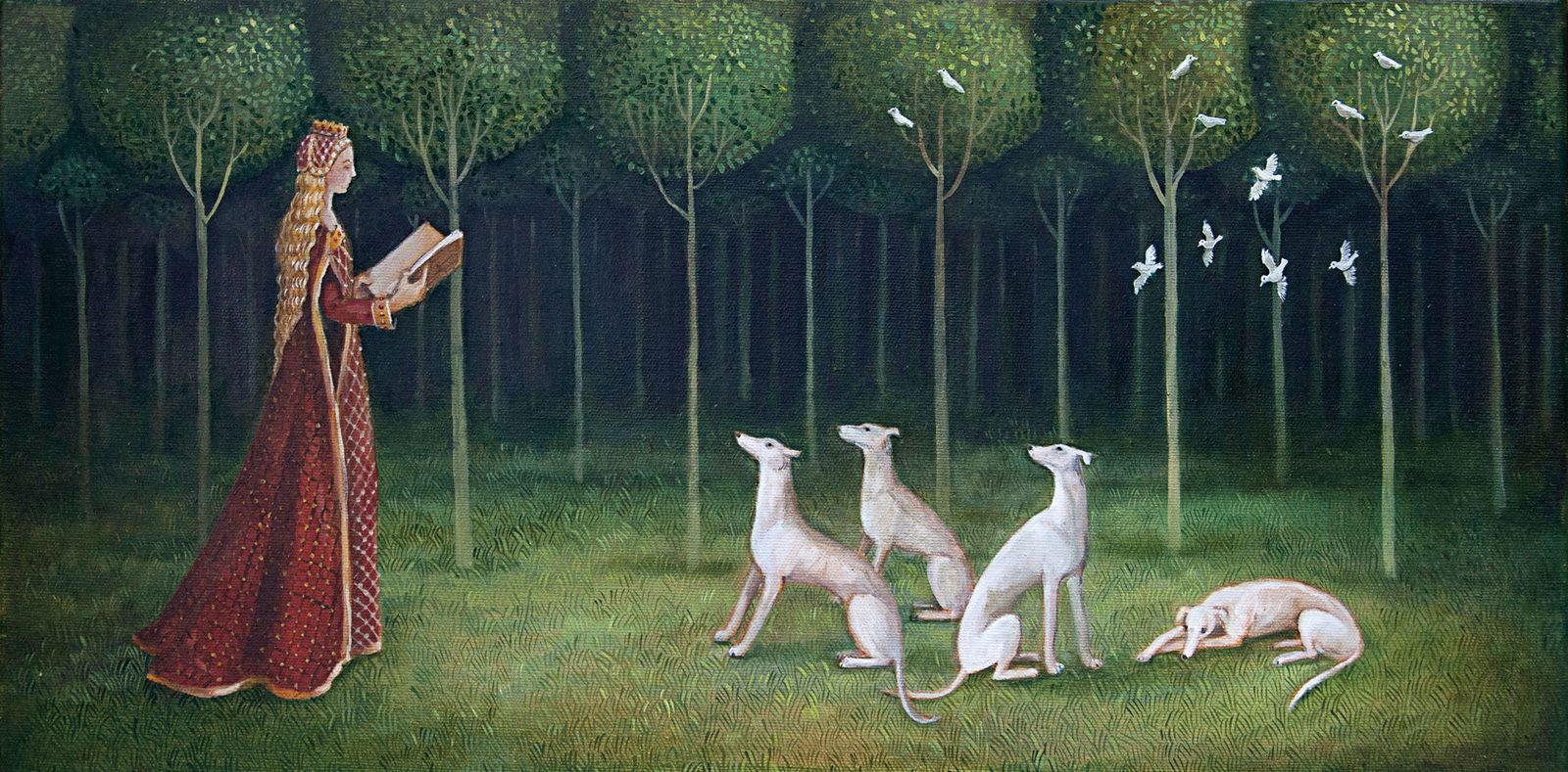 Plączą się u mnie od zawsze, to taki mój motyw. Jako dziewczynka zainteresowałam się sztuką, bo chciałam rysować konie. Podobają mi się charty, sporo ich jest na średniowiecznych obrazach.