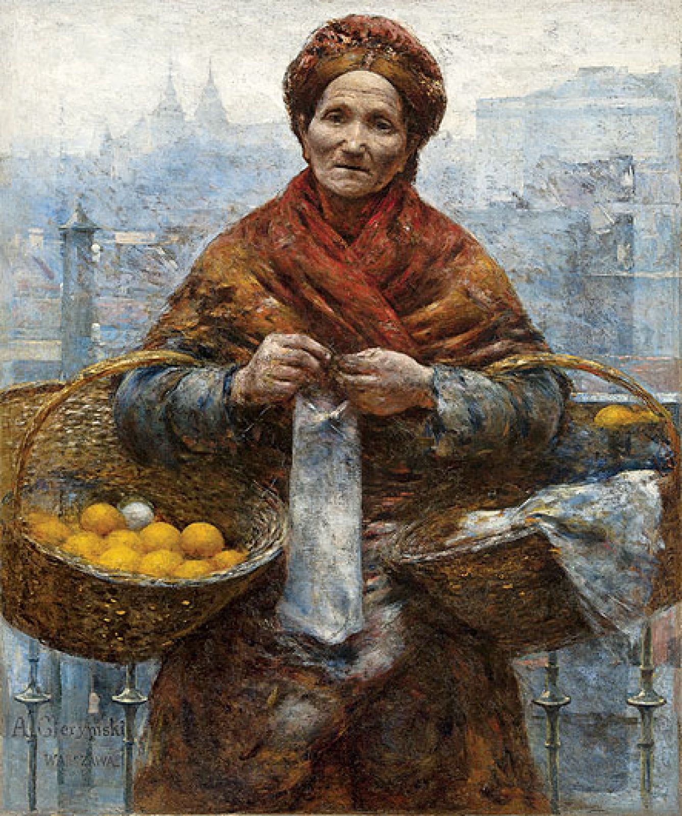 Żeby przysposobić babcię do publicznego występu, konserwatorka poświęciła jej 440 dni. Renowacja wymagała dziennego światła. Pani Lewandowska jesienią okupowała wraz ze swą podopieczną gabinet szefowej muzeum, usytuowany po słonecznej stronie budynku. Potem konserwatorka i „Pomarańczarka” musiały zadowolić się lampą do retuszu. Od grudnia ubiegłego roku owoce w koszyku warszawskiej handlarki jaśnieją jak słoneczka dla wszystkich odwiedzających muzeum.