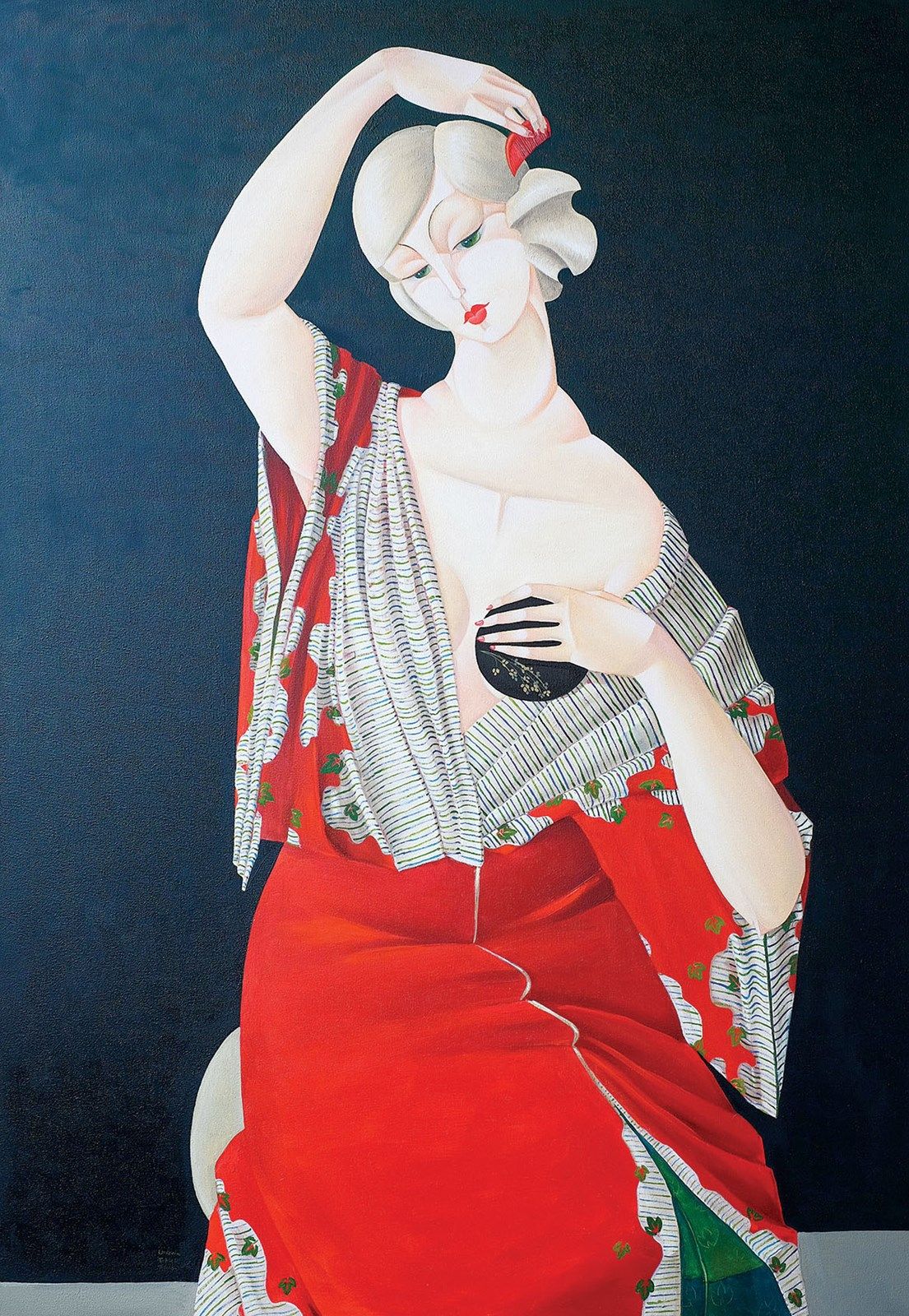 Swego czasu fascynowały mnie lata międzywojenne, kobiety fatalne Witkacego, sztuka Łempickiej. Wtedy natknęłam się na elementy Orientu. W sztuce drzeworytu ukiyo-e jest nurt zwany bijinga – obrazy pięknych kobiet nieprzedstawiające konkretnych osób. Słynny Kitagawa Utamaro malował np. gejsze podczas codziennych czynności.