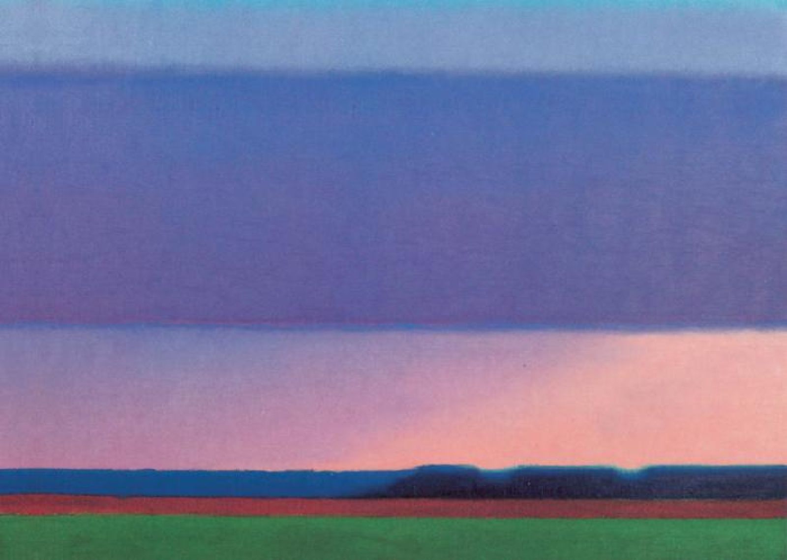 Antoni Starowieyski nie potrafi też rozwodzić się nad swymi pracami. Pytany o nie, odpowiada prawie monosylabami. Z trudem dowiedziałam się, dlaczego ostatnio maluje mazowieckie krajobrazy: to oznaka wyzwolenia, dojścia do siebie, zdobycia równowagi wewnętrznej. Maluje z żabiej bądź ptasiej perspektywy. Ogromne niebo i wąski pasek ziemi lub przeciwnie, horyzont pod górną krawędzią obrazu i dominujący masyw ziemi. Takie ustawienie sprawia, że odbieramy kompozycje jako emocjonalnie lekkie albo wyrażające psychiczny dołek.