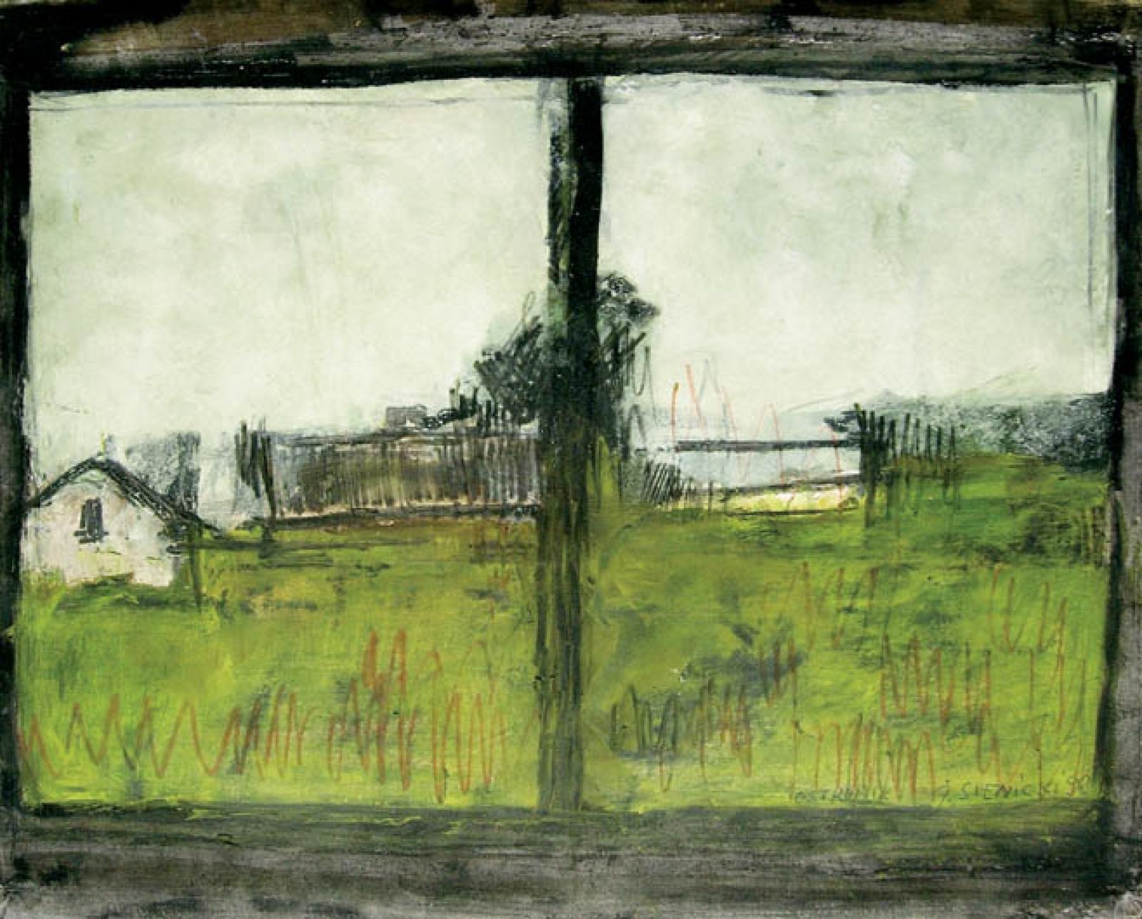 Wielokrotnie odwiedzałam go w domu przy Czeskiej; kręciłam o nim materiały dla TVP. Za którymś razem wręczył mi gwasz-pamiątkę. Widok na dachy domostw, oglądane z tarasu państwa Sienickich. Sprawdziłam – wszystko zostało wiernie oddane. A jednak zmienione poprzez zmysł syntezy, porządkowania, jakim wyróżniał się artysta.