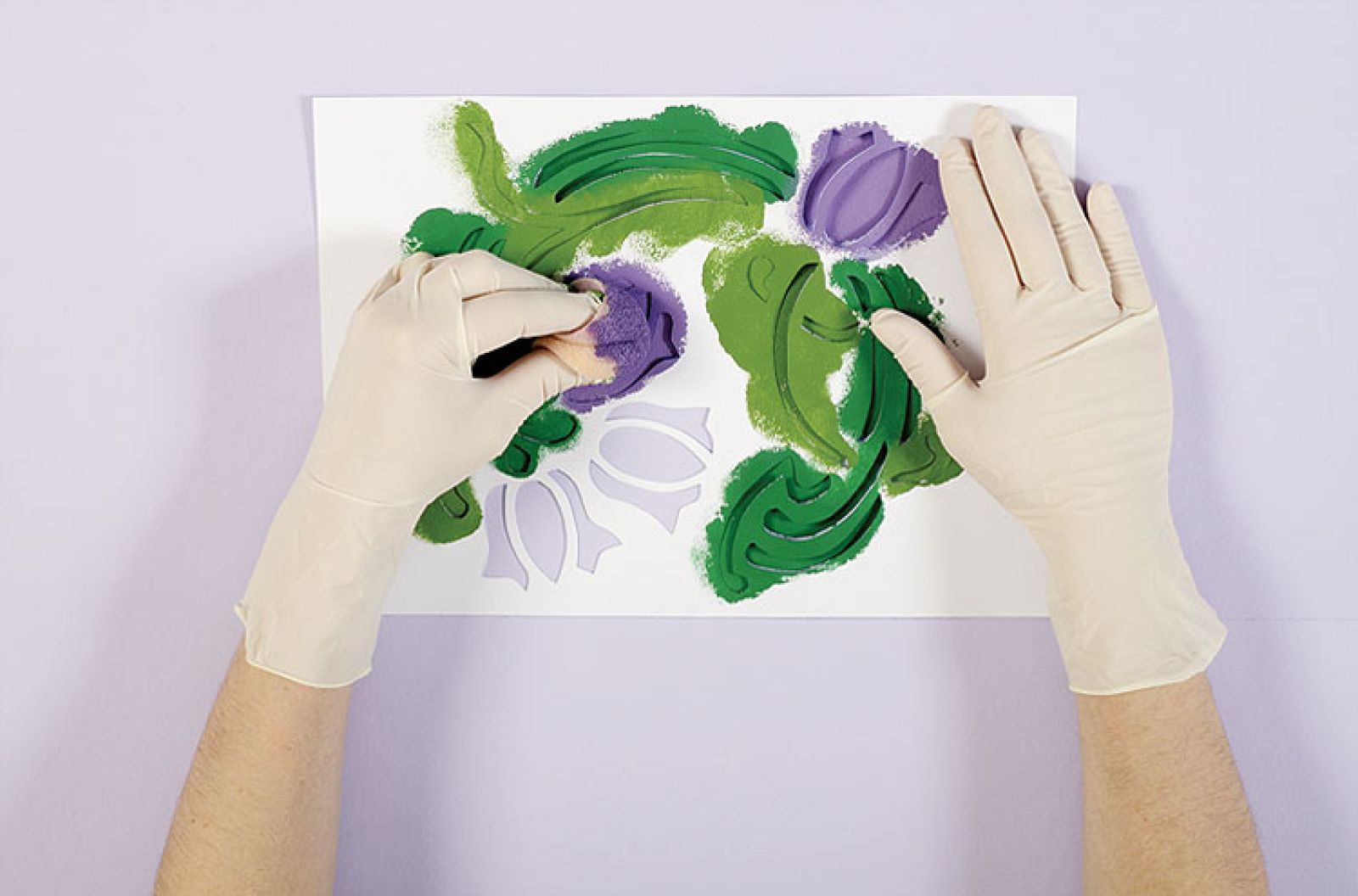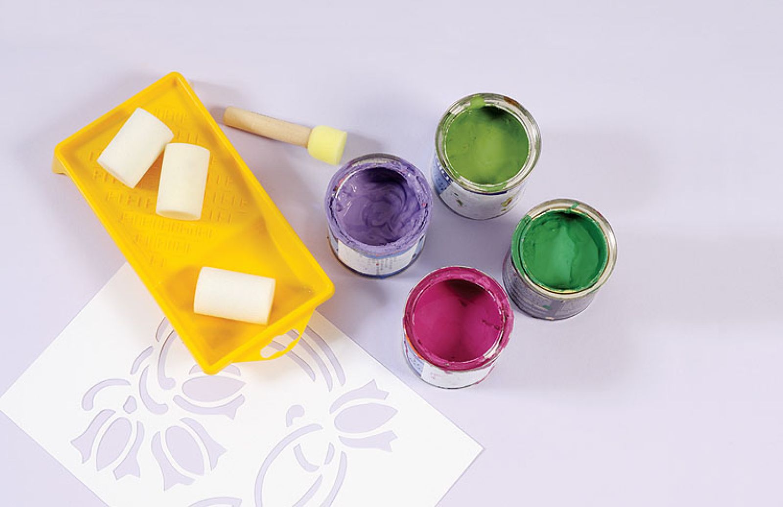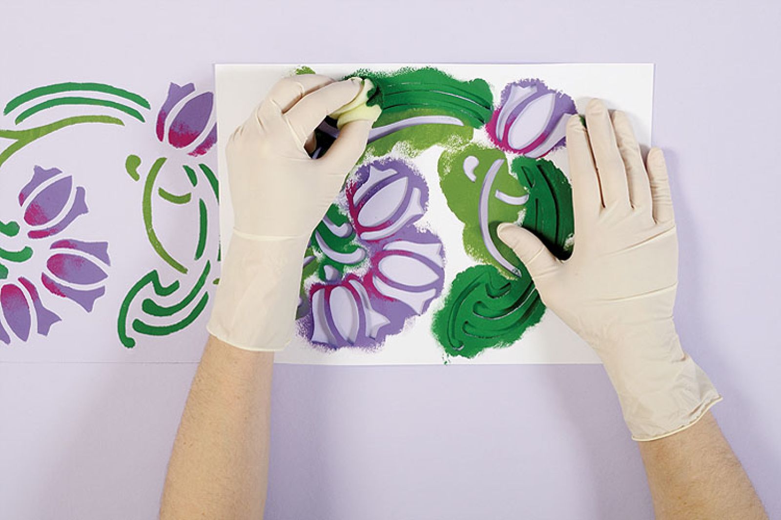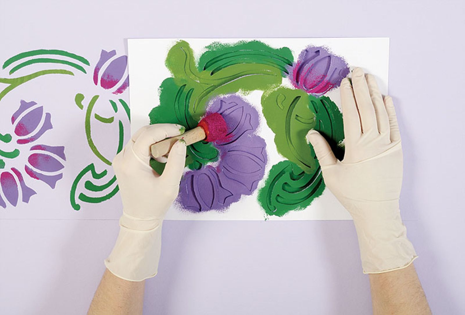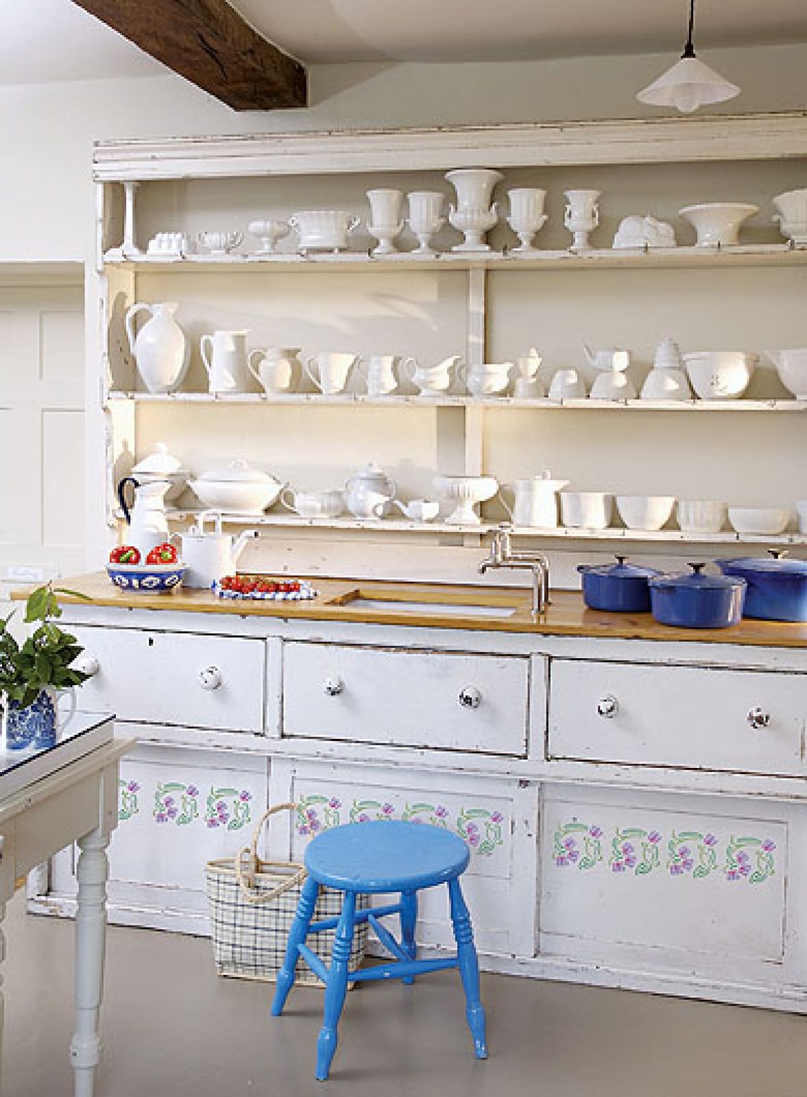 Wzór naszych fresków podpatrzyliśmy na angielskim kaflu z lat 20. Zrobiono go w genialnej manufakturze Fired Earth. Kwiatowy ornament trafi na szafki w kuchni, możemy też ozdobić nim pastelową konsolkę.