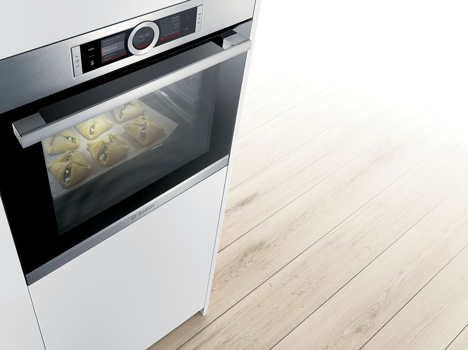 Prawdziwy kombajn – aż 14 funkcji. W tym najważniejsze: piekarnik tradycyjny, parowy i kuchenka mikrofalowa. Ciekawa zaleta to chłodny front (30°C), a więc nie poparzy dziecięcej rączki. HNG6764S1, dodatkowe metody grzania z wykorzystaniem pary: regeneracja i fermentacja, do pieczenia specjalna termosonda PerfectRoast, automatyczny system czyszczenia pyrolitycznego, 8349 zł, BOSCH.