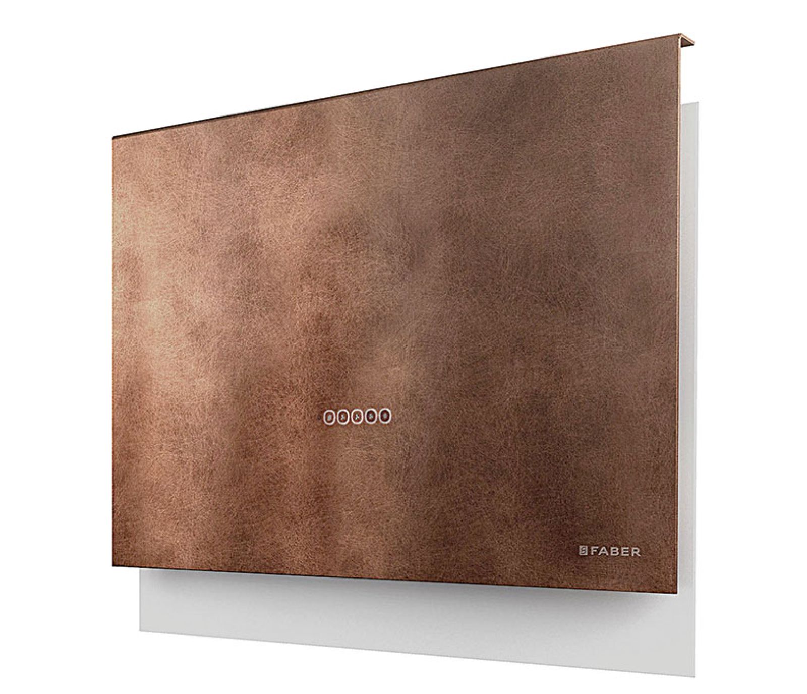 Okap w kolorze modnej miedzi (inne do wyboru: cement, titanium). Wygląda jak zawieszony w powietrzu. TALIKA, zastosowanie dyfuzora Nautilus umożliwiło stworzenie pierwszego naprawdę płaskiego okapu, 6999 zł, FABER.