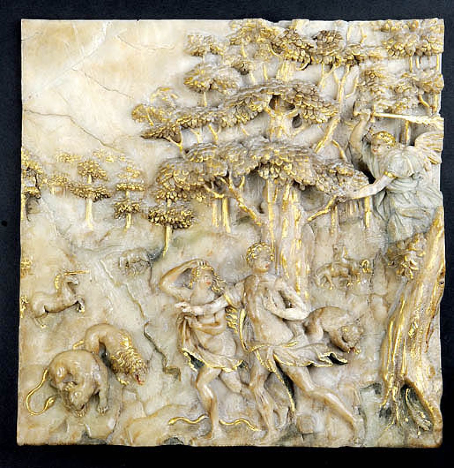 Mleczny kamień pojawia się też w Biblii jako symbol czystości. Grzesznica Maria z Betanii przyszła do Jezusa z olejkami w alabastrowym naczyniu i namaściła mu stopy. Zresztą Kościół wielokrotnie wykorzystywał przezroczysty kamień. Robiono z niego nagrobki, ołtarze, a w średniowieczu cieniutkie alabastrowe płyty wstawiano w okna. W XVI wieku upodobali go sobie niderlandzcy rzeźbiarze i pracę z tym kamieniem doprowadzili do perfekcji. Aby się o tym przekonać, warto wybrać się do Gdańska na wystawę „Materia światła i ciała”. Reklamuje ją plakat przedstawiający malutki (30 na 30 cm) relief „Wygnanie z raju” – zobaczymy na nim cały tragizm biblijnej opowieści, przerażenie winnych, złość Boga i piękno utraconego ogrodu, wszystko z alabastru, polichromowane i złocone.