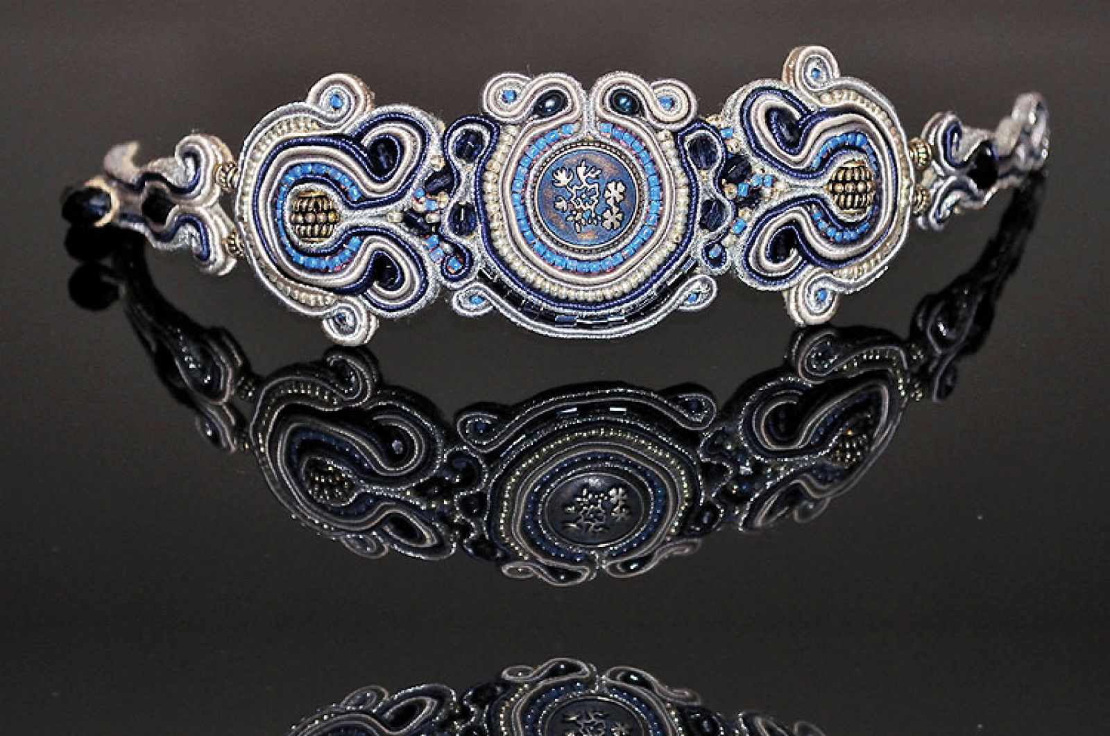 Zaczęłam... pięć lat temu. W jakiejś zachodniej gazecie zobaczyłam zdjęcie kolii. Szukałam informacji na temat haftu soutache’owego – po polsku nie było nic. Wreszcie udało mi się kupić sznurki, rozpracować kleje, impregnaty do tkaniny. Wymagało to niebywałej cierpliwości. Zresztą i dzisiaj jej wymaga, bo zrobienie naszyjnika zajmuje minimum tydzień.