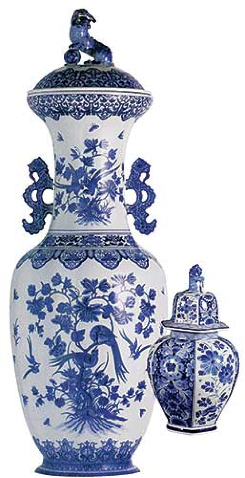 Rzemieślnicy, którzy kopiowali wzory chińskie i japońskie, zdobili przedmioty tylko jednym, kobaltowym kolorem – rysowali nim na białym szkliwie. Inspirowali się przy tym porcelanowymi przedmiotami z Jingdezhen. Ta chińska miejscowość od XIV wieku zaopatrywała najpierw Chiny, a potem dalekie kraje.