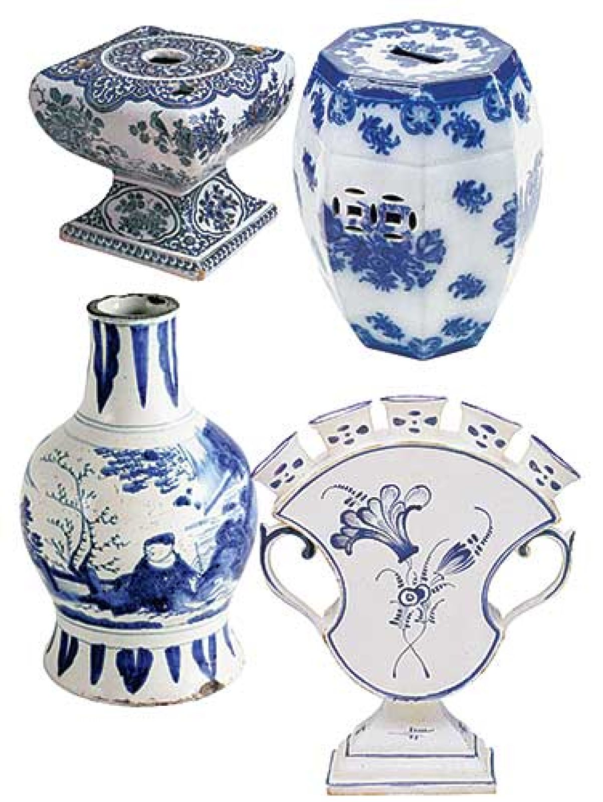Na wazach i innych naczyniach przedstawiali symbole z Dalekiego Wschodu, np. berło „Ju-i” w kształcie serca, ptaki, motywy kwiatowe oraz sceny rodzajowe zaludnione skośnookimi mężczyznami i kobietami. Imponująca była różnorodność produkowanych przedmiotów – od słynnych kafli, przez kałamarze, tabakiery, pojemniki kuchenne, mleczniki, po specjalne naczynia do hodowli tulipanów w domu.