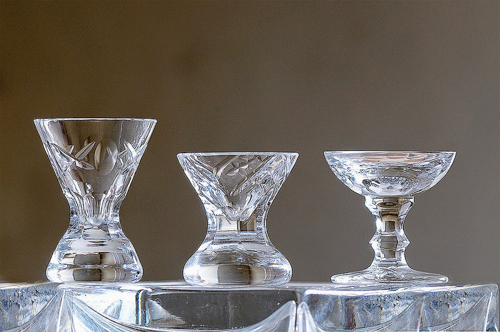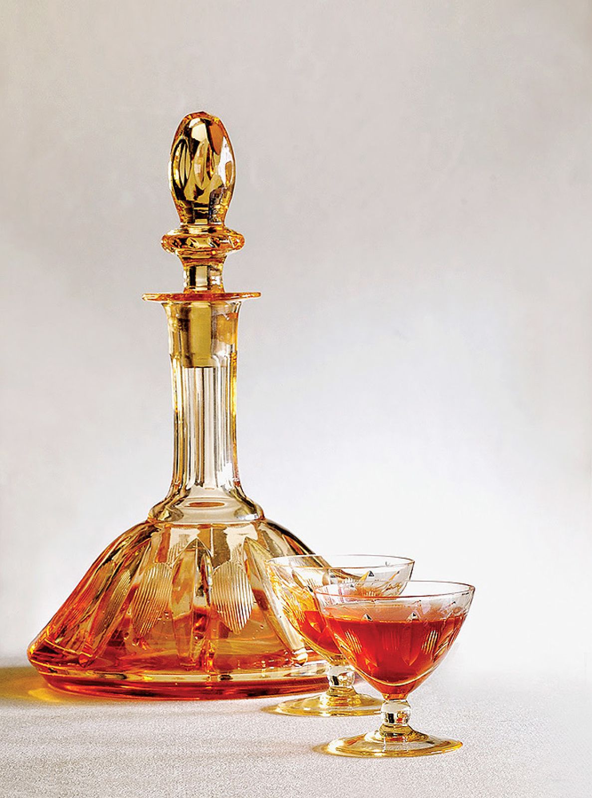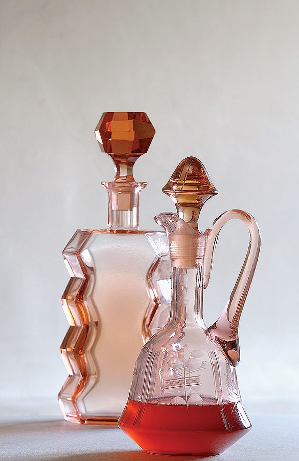 Moja przygoda z karafkami zaczęła się kilkanaście lat temu w Poznaniu, gdzie otworzyłem restaurację Nalewka. Chciałem podawać gościom nalewki w pięknych naczyniach. Bo myślę, że przedmiot użytkowy ma tym większą wartość emocjonalną, im częściej służy ludziom. Karafka postawiona w gablocie jest tylko kawałkiem szkła, a napełniona szlachetnym alkoholem ożywa. Poszukiwania rozpocząłem na pchlich targach, gdzie zapomniane przedmioty można kupić za rozsądne pieniądze. Od tamtego czasu zebrałem ponad dwieście karafek i tysiąc kieliszków. Większość pochodzi z okresu międzywojennego, część z drugiej połowy XIX wieku. Zbiór cały czas opracowuję. Datowanie jest utrudnione, bo brakuje fachowej literatury, nawet obcojęzycznej. Do tego w XIX wieku często naśladowano style z poprzednich epok. Pomocne więc są dawne katalogi firm produkujących szkło. Jednocześnie dziesięć lat temu zorganizowałem pierwszy Festiwal Dobrego Smaku. Kultura produkowania i picia domowych trunków, tak rozpowszechniona przed wojną, na szczęście się odradza.