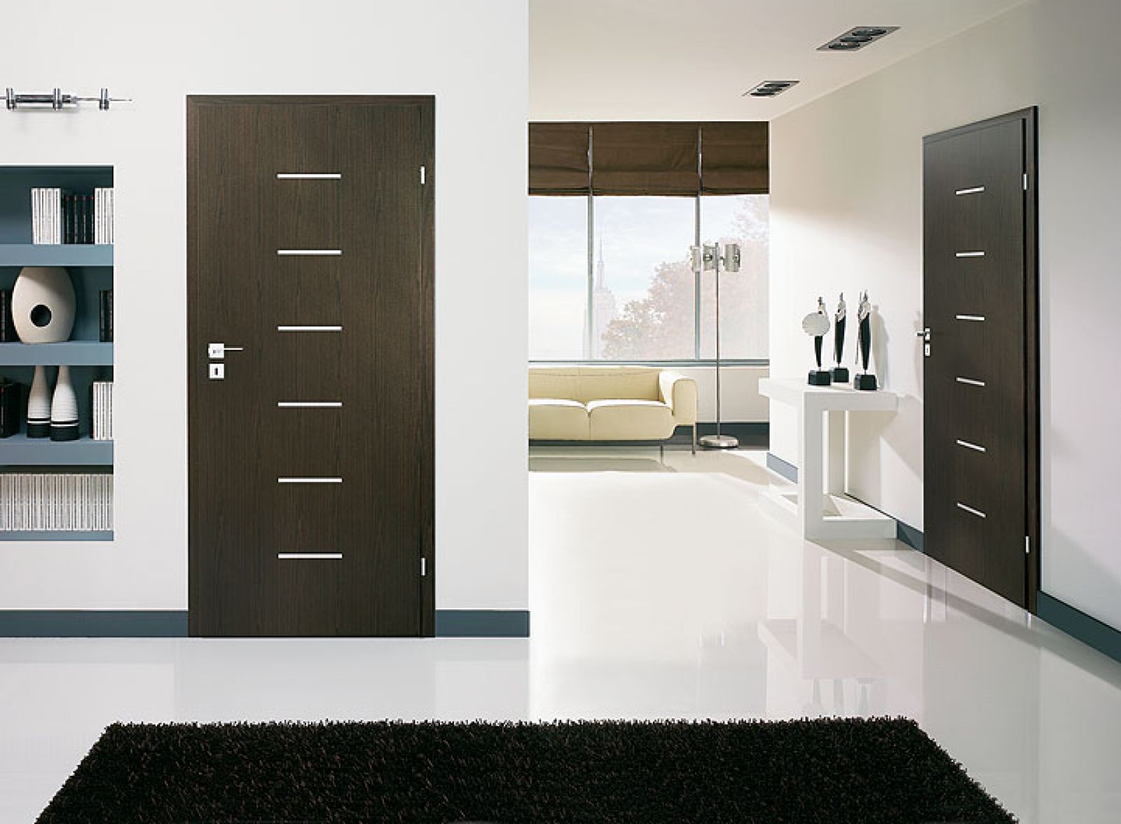 Drzwi, w przeciwieństwie do okien, ostatnio tracą na znaczeniu, bo liczy się przestrzeń. Wewnątrz domu otwieramy wszystko, co się da. Może dlatego projektanci dbają o to, by i w drzwiach znalazły się przeróżne nowinki. – Lubię takie, których nie widać, bo są ukryte na przykład za rzędem paneli lub w ścianie wyłożonej ozdobnym szkłem – mówi Andrzej Klimek z firmy Klimek i Kluś. Kolejna moda: drzwi zdecydowanie wyższe niż standardowe, dzięki czemu nabierają smukłości i szlachetności. Anna Fusiara, menedżer salonu Barausse Polska, twierdzi, że wysokie modele przywędrowały do nas z południa Europy. I dobrze, bo sprawiają, że pokoje wydają się wyższe.