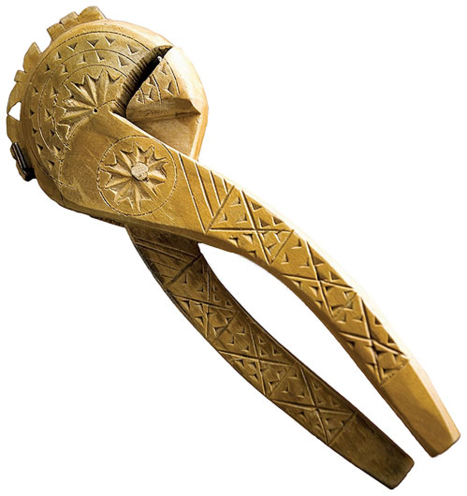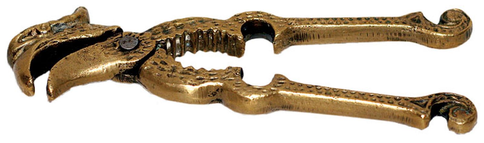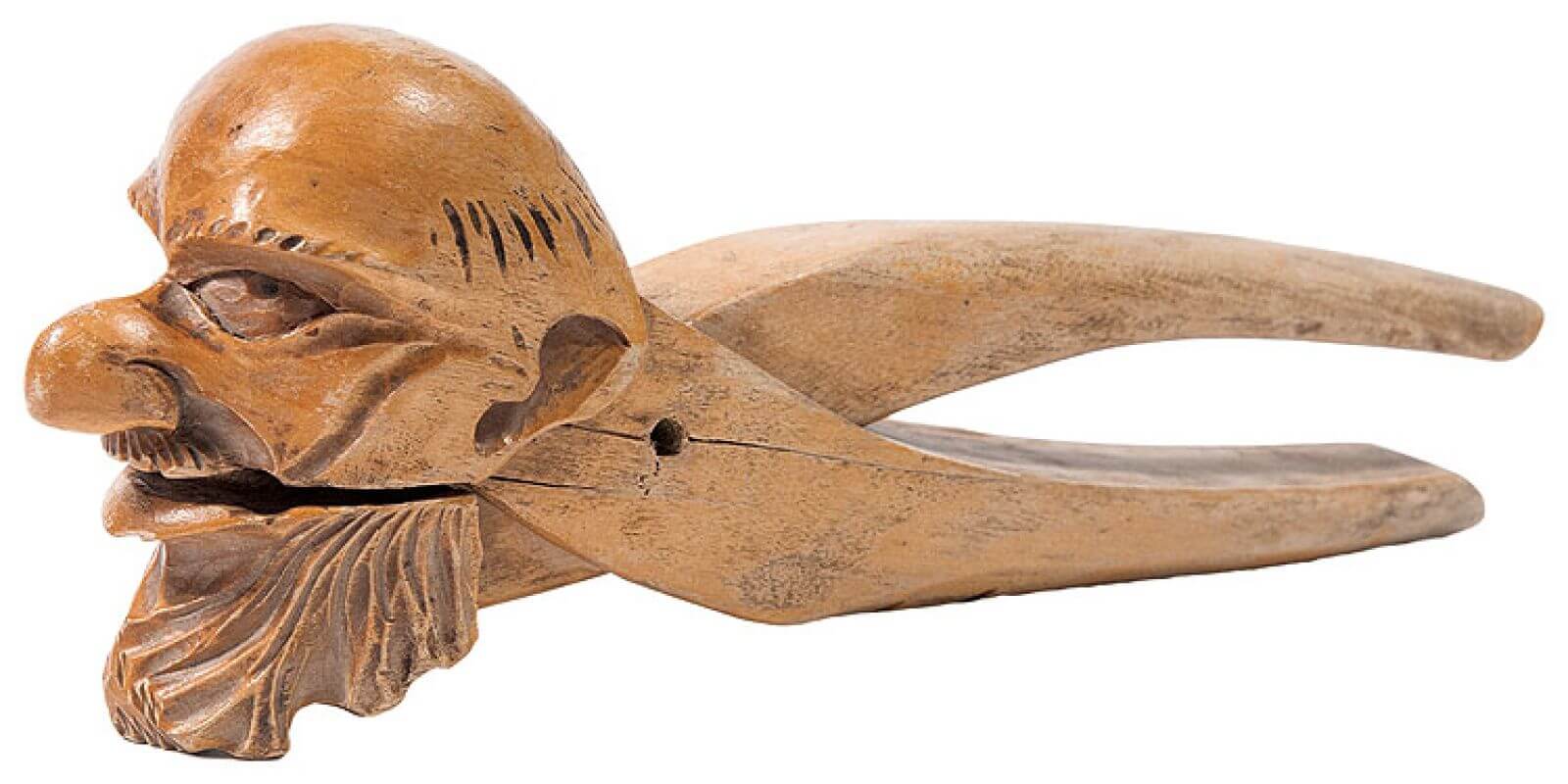 Orzechy, zawsze twarde do zgryzienia, kiedyś były również przedmiotem kultu. Celtowie i Germanie oddawali cześć leszczynie. Paweł Jasienica notował, że podczas wykopalisk w Szczecinie odnaleziono wiele skorupek orzecha laskowego. Nie były zgniecione, nosiły ślady otwierania nożem. Jasienica twierdzi, że musiały być przeznaczone na ofiarę dla bóstw i dlatego nie wolno było uszkodzić skorupek. Jakoś trzeba jednak dobrać się do tego, co w środku – i tu docieramy do „gryzienia”. Faktycznie, wydaje się, że pierwszym, choć nieco ryzykownym sposobem było użycie własnej szczęki. Świadczy o tym choćby tradycyjna polska nazwa urządzenia do otwierania orzechów – „zęby”. Zresztą kształty wielu dziadków przypominają ludzką lub zwierzęcą głowę – orzech wkładamy właśnie między „szczęki”.
