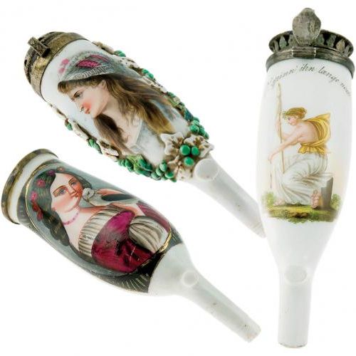 Rozwiązanie okazało się istotne, gdy do produkcji zaczęto stosować gładką porcelanę. Takie egzemplarze były początkowo horrendalnie drogie. Szczególnie ceniono je w epoce biedermeier. Miały klasyczne kształty, często ludzkie formy. Na kominach malowano pejzaże, panoramy miast, sceny myśliwskie i rodzajowe. Cybuchy oplatano paciorkami i sznurkami.