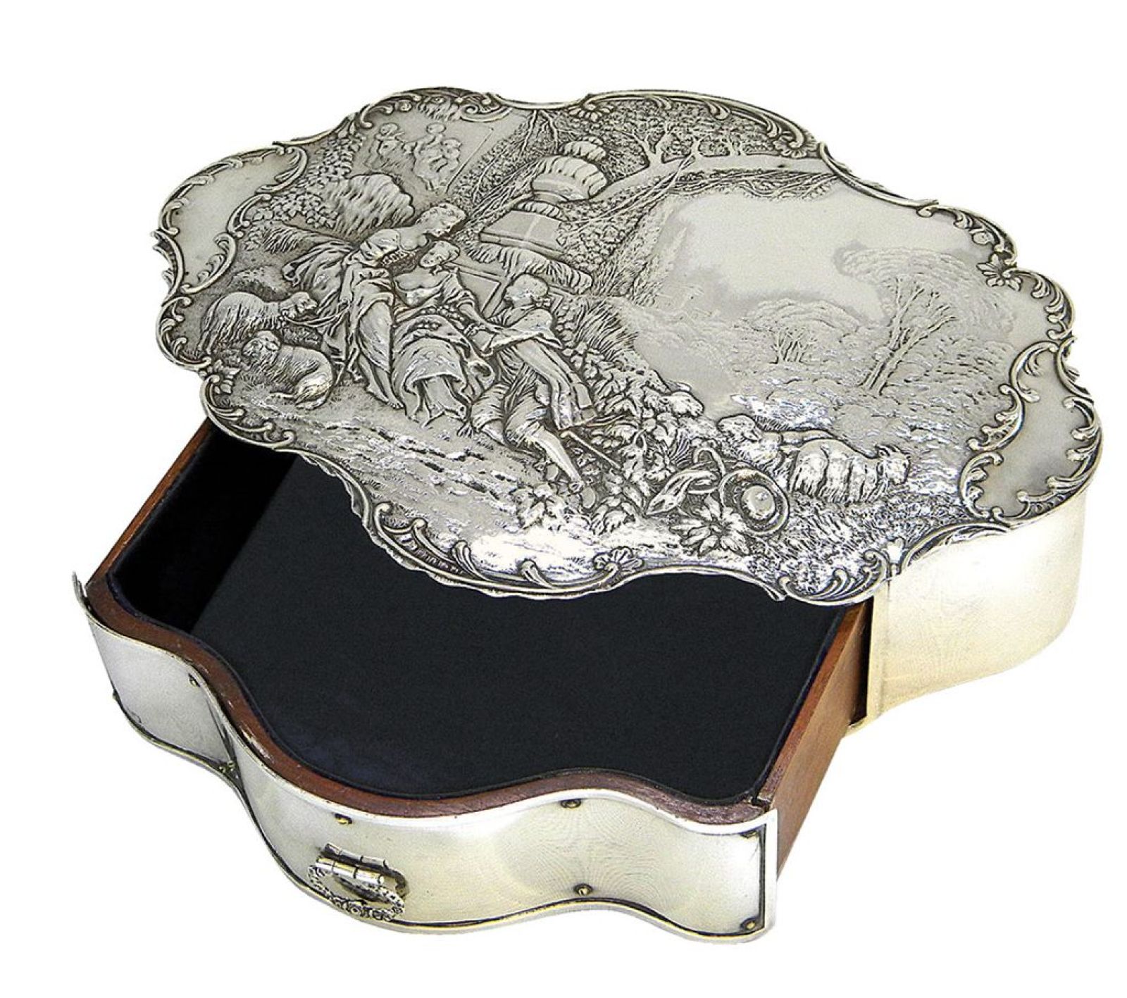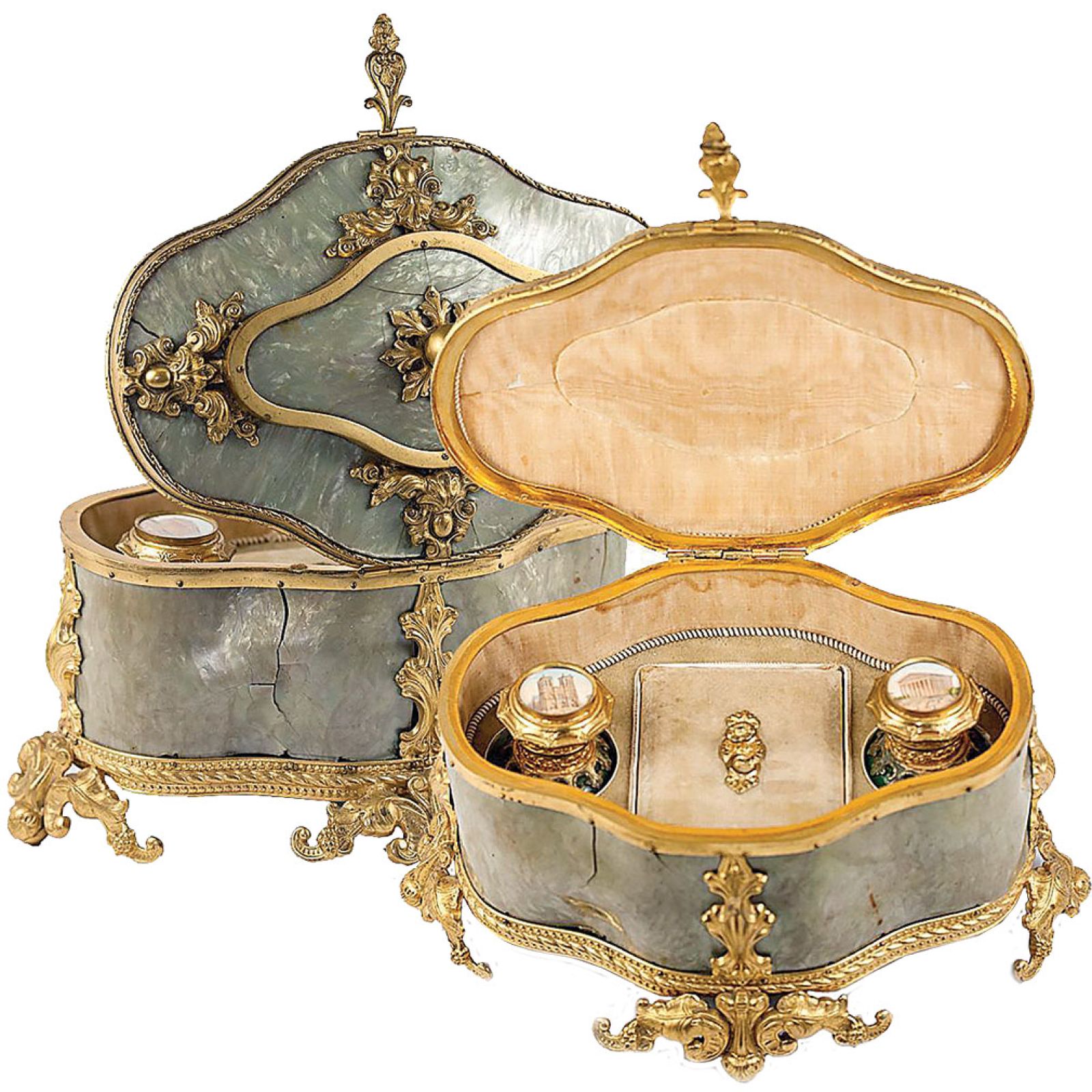 wywodzą się bezpośrednio od tych dużych pancernych skrzyń. Wykonywane na zamówienie przez rzemieślników i jubilerów stały w domach zamożnych kupców i arystokracji. To ich było stać na wspaniałe ozdoby. Do takich skarbczyków wkładano nie tylko biżuterię w rodzaju pierścieni czy kolii. Gdy Maria Józefa Saska, córka króla Augusta III, wychodziła za delfina Ludwika Ferdynanda Burbona, w posagu wniosła także szkatułkę na biżuterię. Były w niej oprócz wisiorów, pięknych guzów, broszy i innych tego typu ozdób również sprzączki do butów, kołnierzyki oraz bawet, czyli trójkątny kawałek tkaniny stanowiący element sukni.
