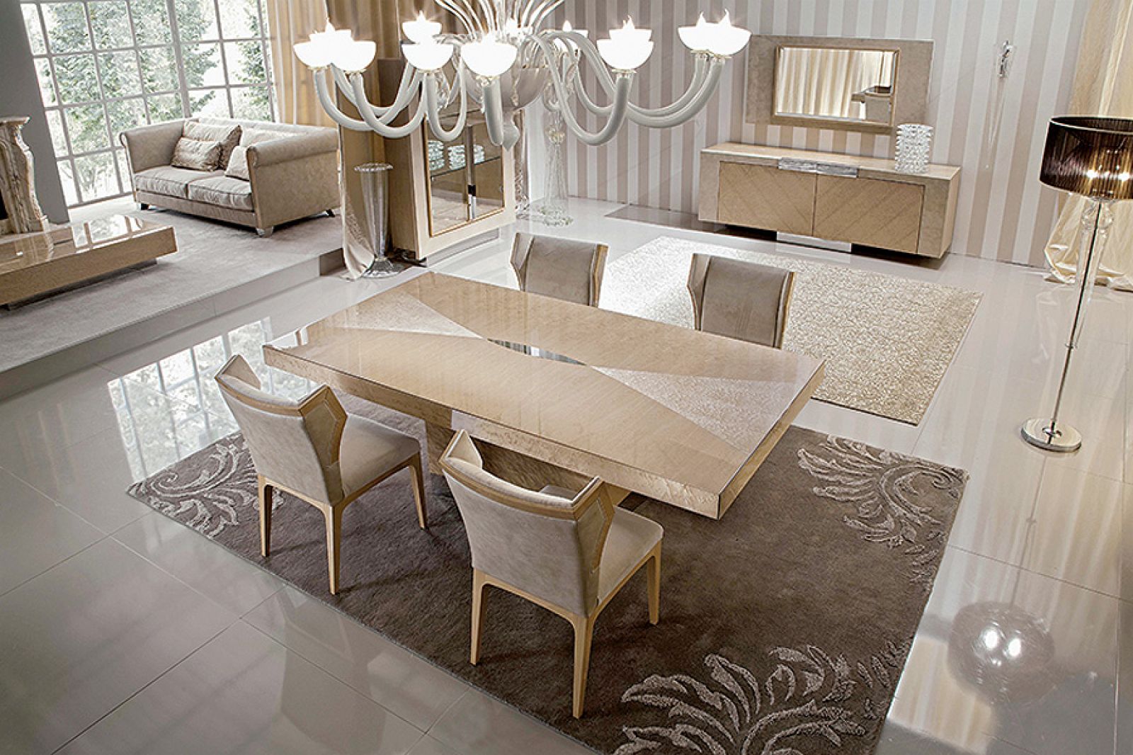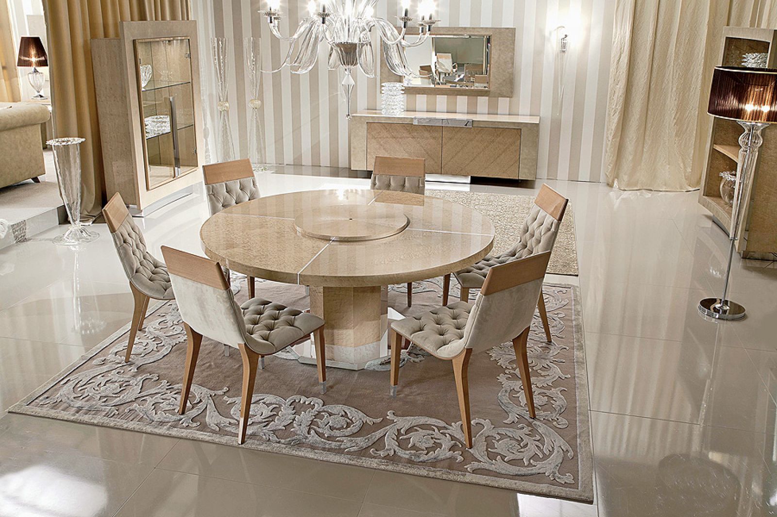 Klasyczne meble do jadalni: okrągły stół i stylizowane krzesła