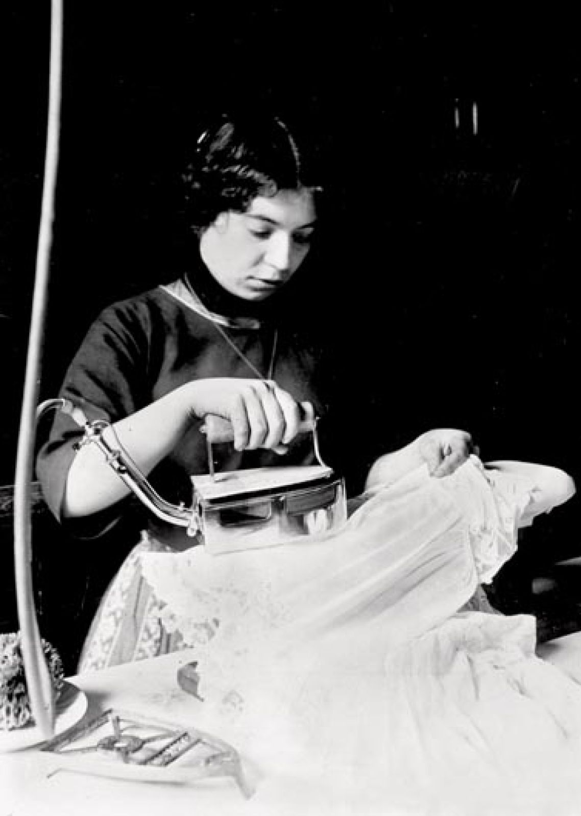 Z czasem model udoskonalono i żelazko podłączano dwoma osobnymi drucikami bezpośrednio do źródła prądu. Druciki znajdowały się w górnej części urządzenia. A to dlatego, że w domach brakowało kontaktów i żeby prasować, odłączało się od prądu żarówkę w suficie i podłączało żelazko. Stąd prosty wniosek, że prasować można było jedynie za dnia.