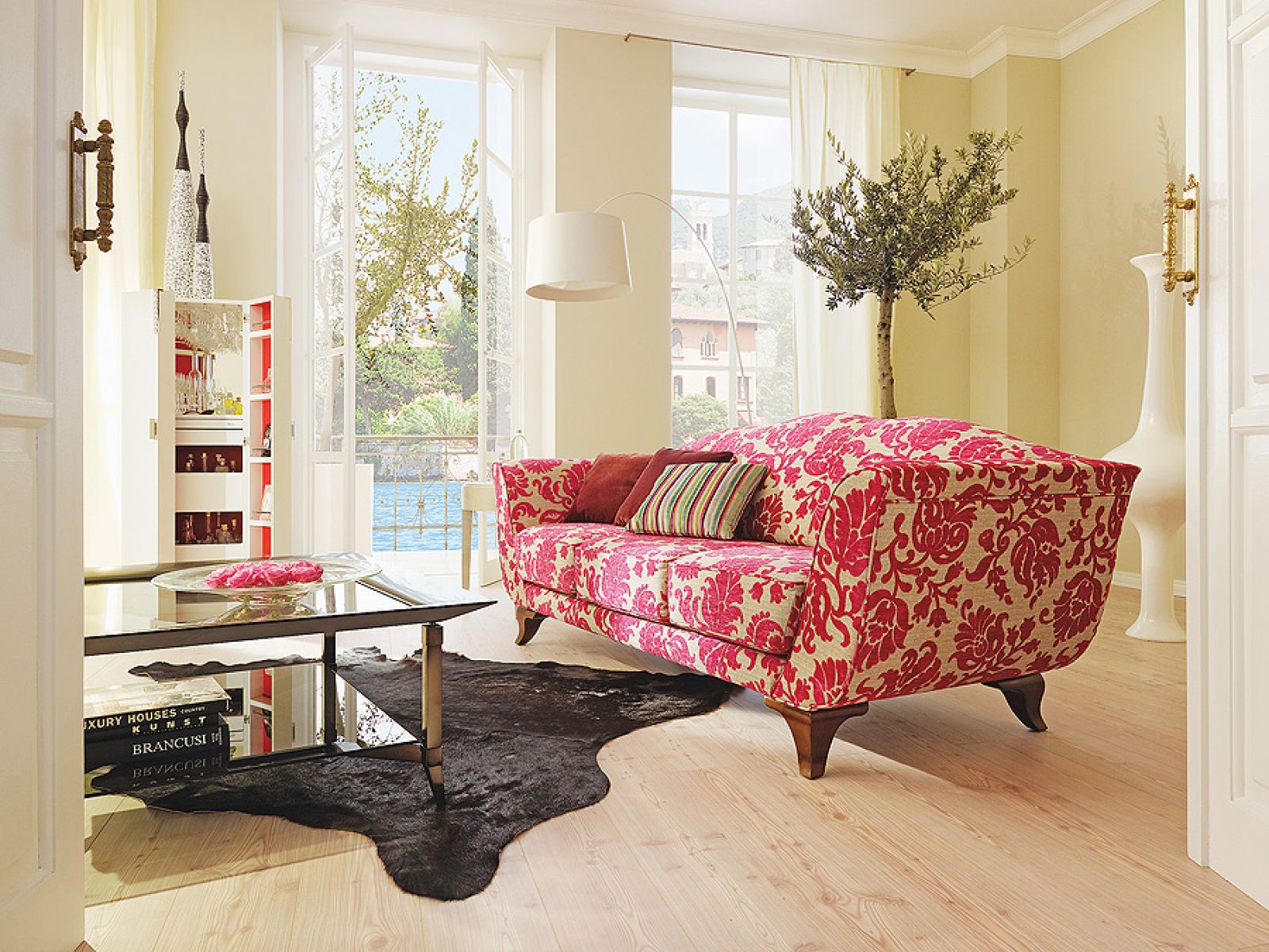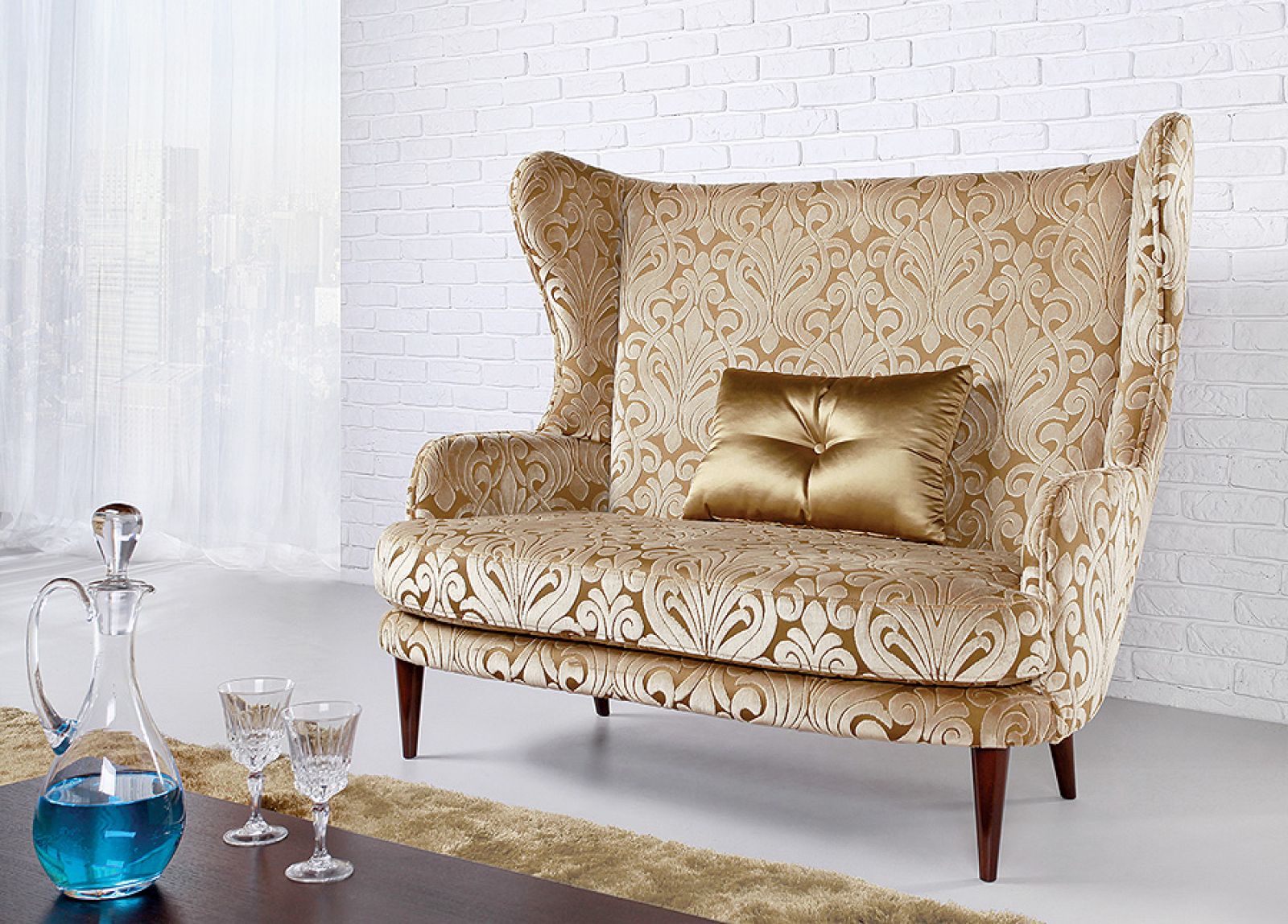 Co znajdziemy w sklepach? Przypominające fotele uszaki siedziska dla dwojga w ognistych kolorach: czerwieni, różu, granacie. Zgrabne, nieduże (sofka od Belle Maison jest tak mała, że można by ją wziąć pod pachę), mają nóżki wygięte z francuska lub nawiązujące do stylu lat 60.