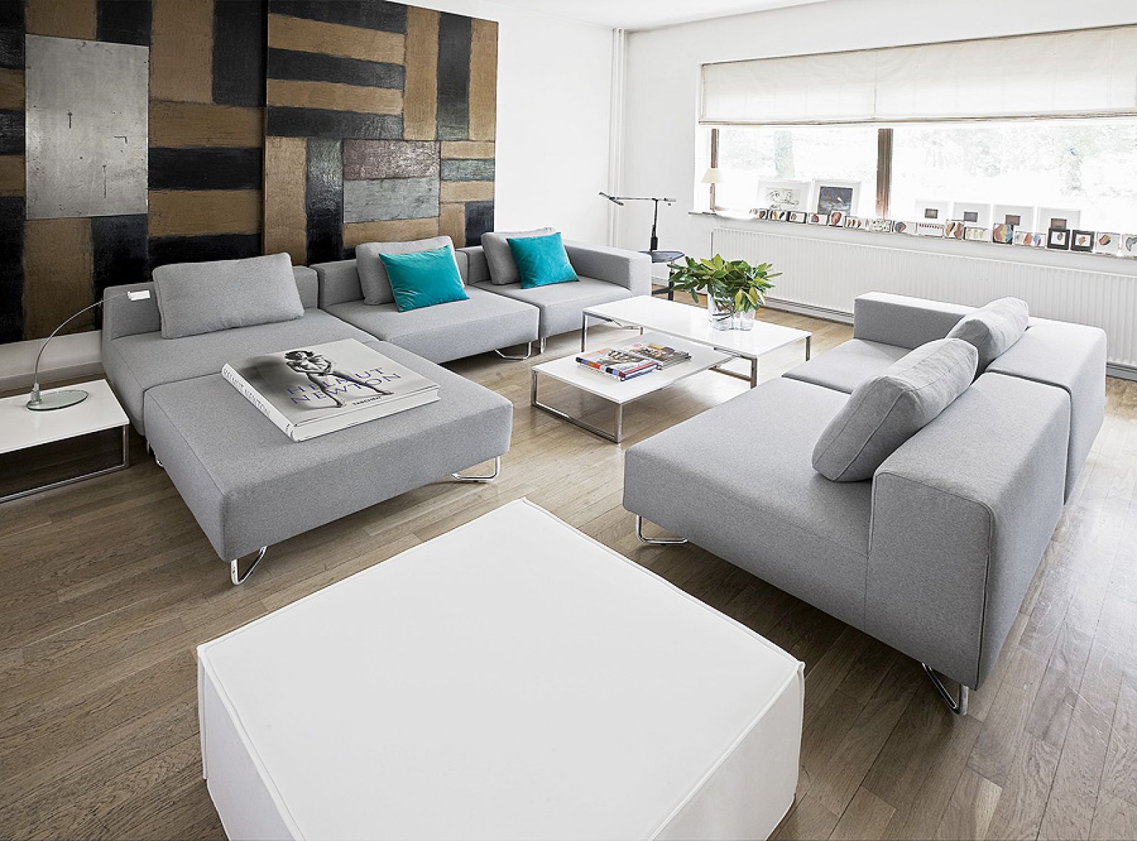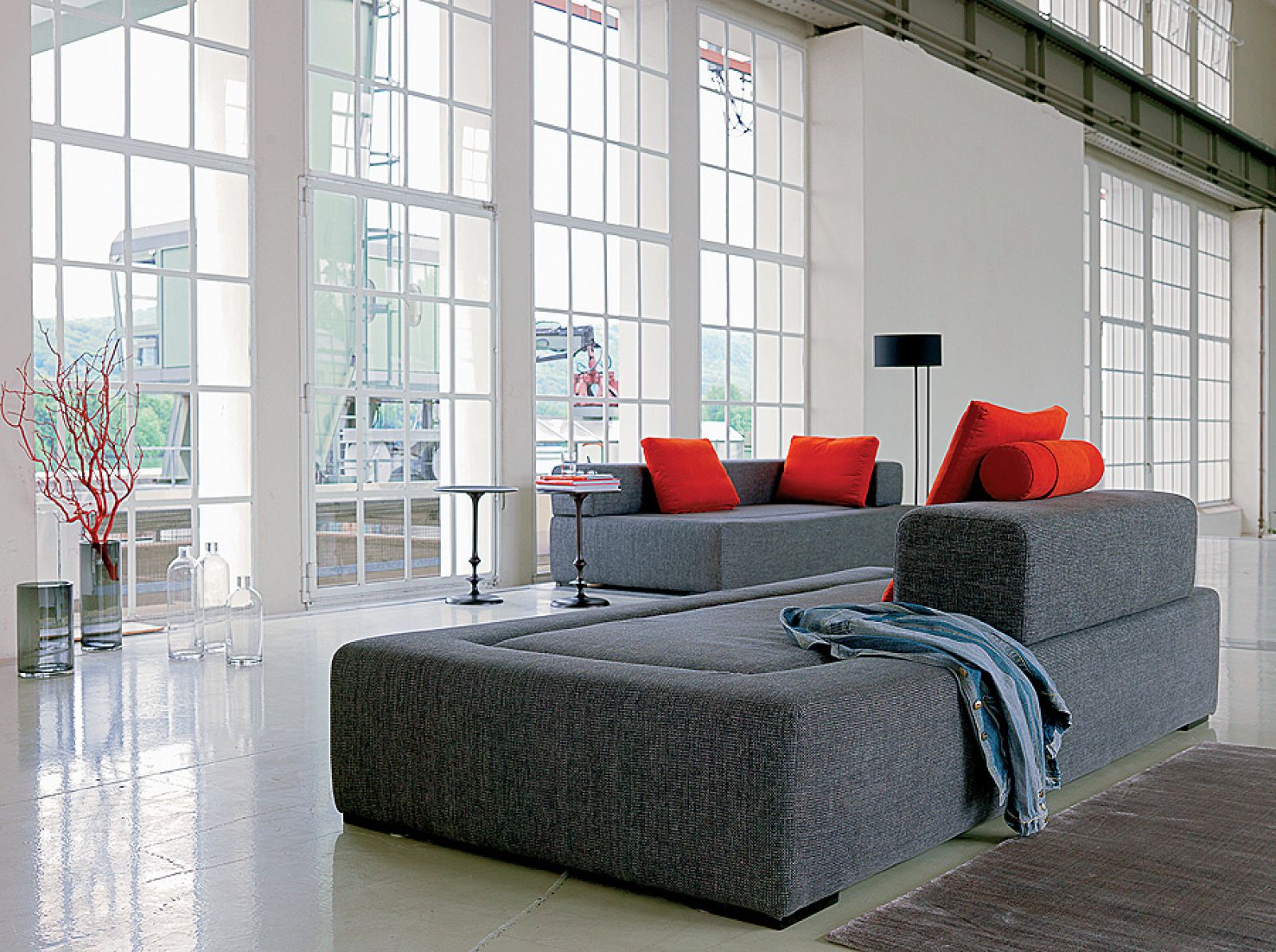 Rozwiązanie jest proste: wybieramy czterometrową kanapę zbudowaną z modułów i przestawiamy jej części jak puzzle – zależnie od tego, ilu przyjdzie gości, czy będą tańce... Kultowe propozycje od dizajnerów: pomarszczone jak skóra shar peia kanapiszcza od Ligne Roset czy – klasyka gatunku – skórzana Extrasoft Piera Lissoniego, dwustronna, do postawienia na środku pokoju.