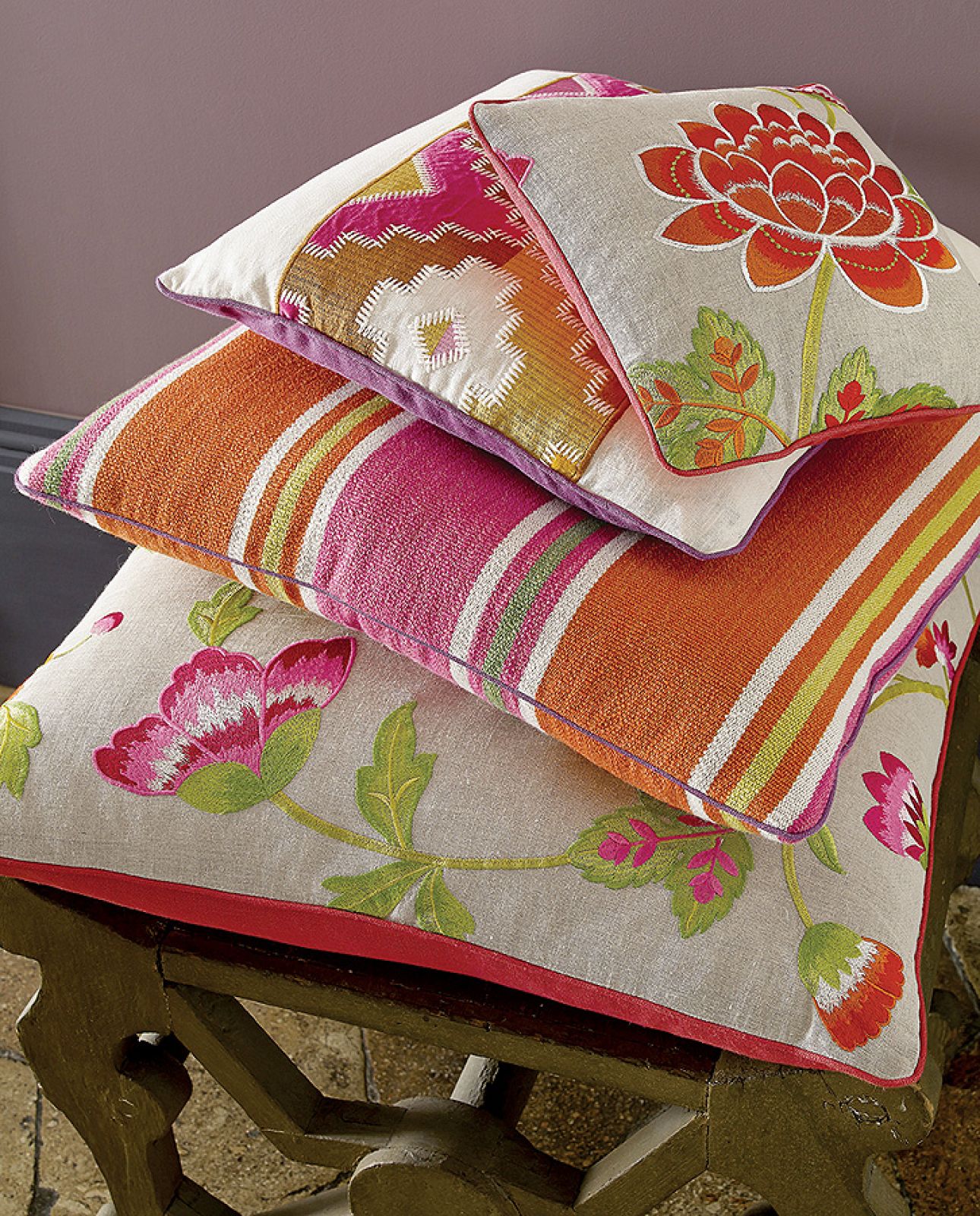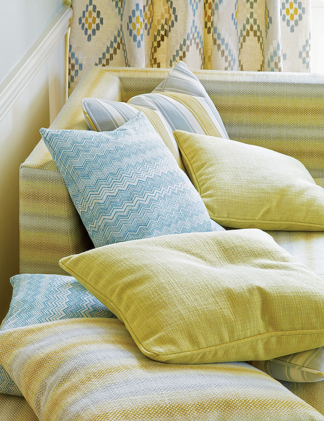 Poduszki, wałki, pledy – obowiązkowo w kolorach tropikalnych drinków. Z wzorami ściągniętymi z egzotycznych wysp – w palmy, flamingi, papugi. Nadal modne są ornamenty inspirowane ludowymi wycinankami. A znana dizajnerka Patricia Urquiola proponuje poszewki z surowej wełny stębnowane kolorowym ściegiem.