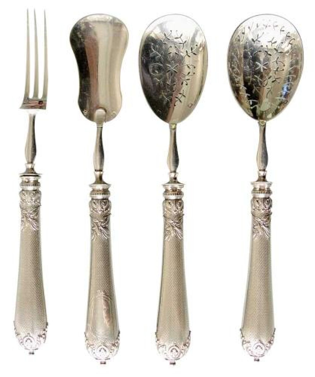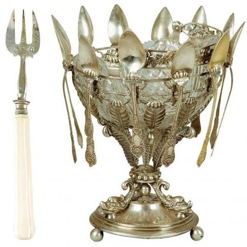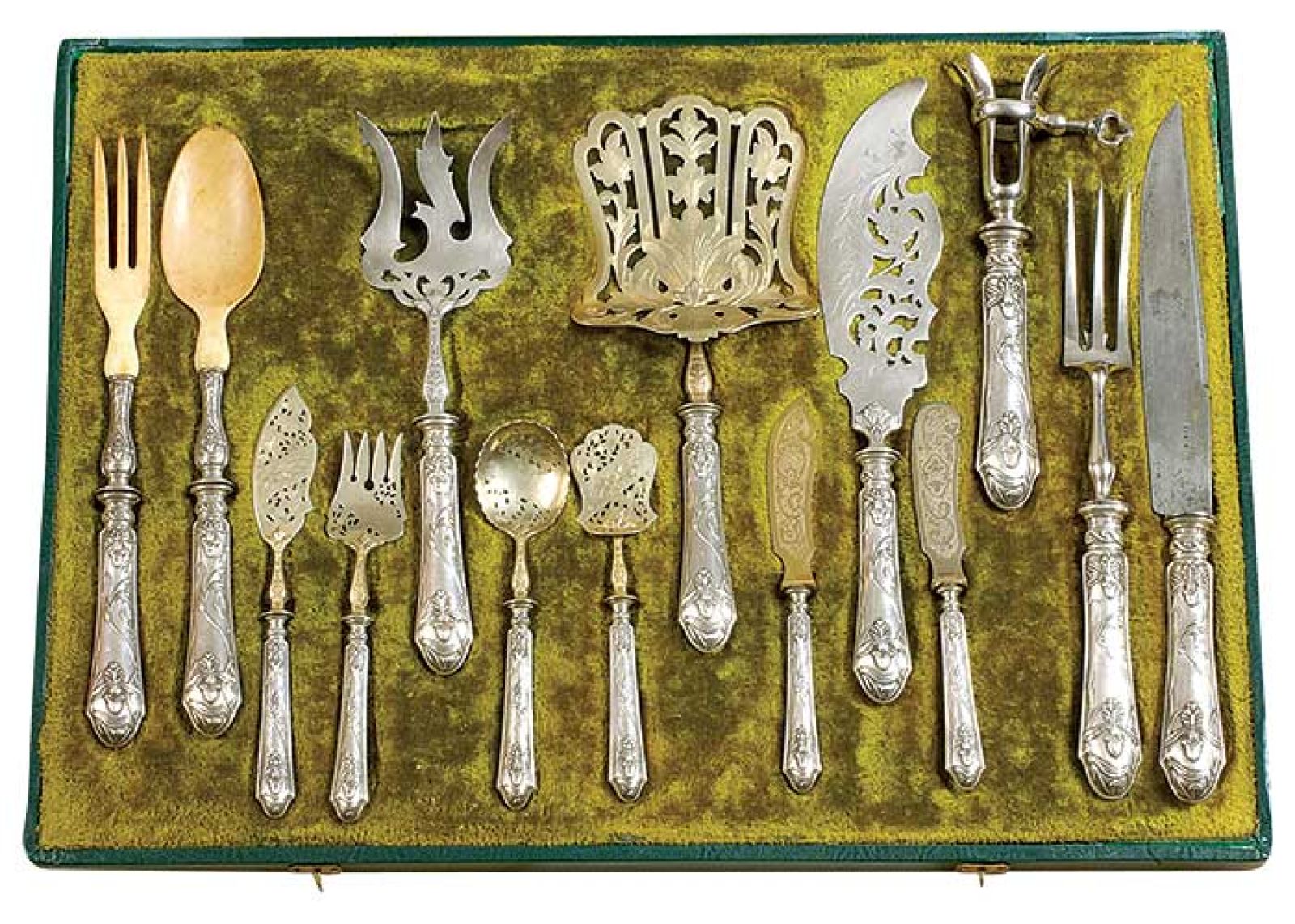 Dziś te najstarsze i wyglądające jak małe dzieła sztuki są obiektem pożądania. Najwięcej kosztują komplety z tzw. środkiem stołu – czyli chochlami, łyżkami do sosów, sałatek, widelcami do mięs, łopatkami do ciast itp. Ich wartość rośnie, jeśli mają oryginalną kasetkę, w której można je przechowywać. Cena takiego zestawu może dochodzić nawet do kilkudziesięciu tysięcy złotych. Niestety, na aukcjach tego typu rarytasy pojawiają się rzadko.