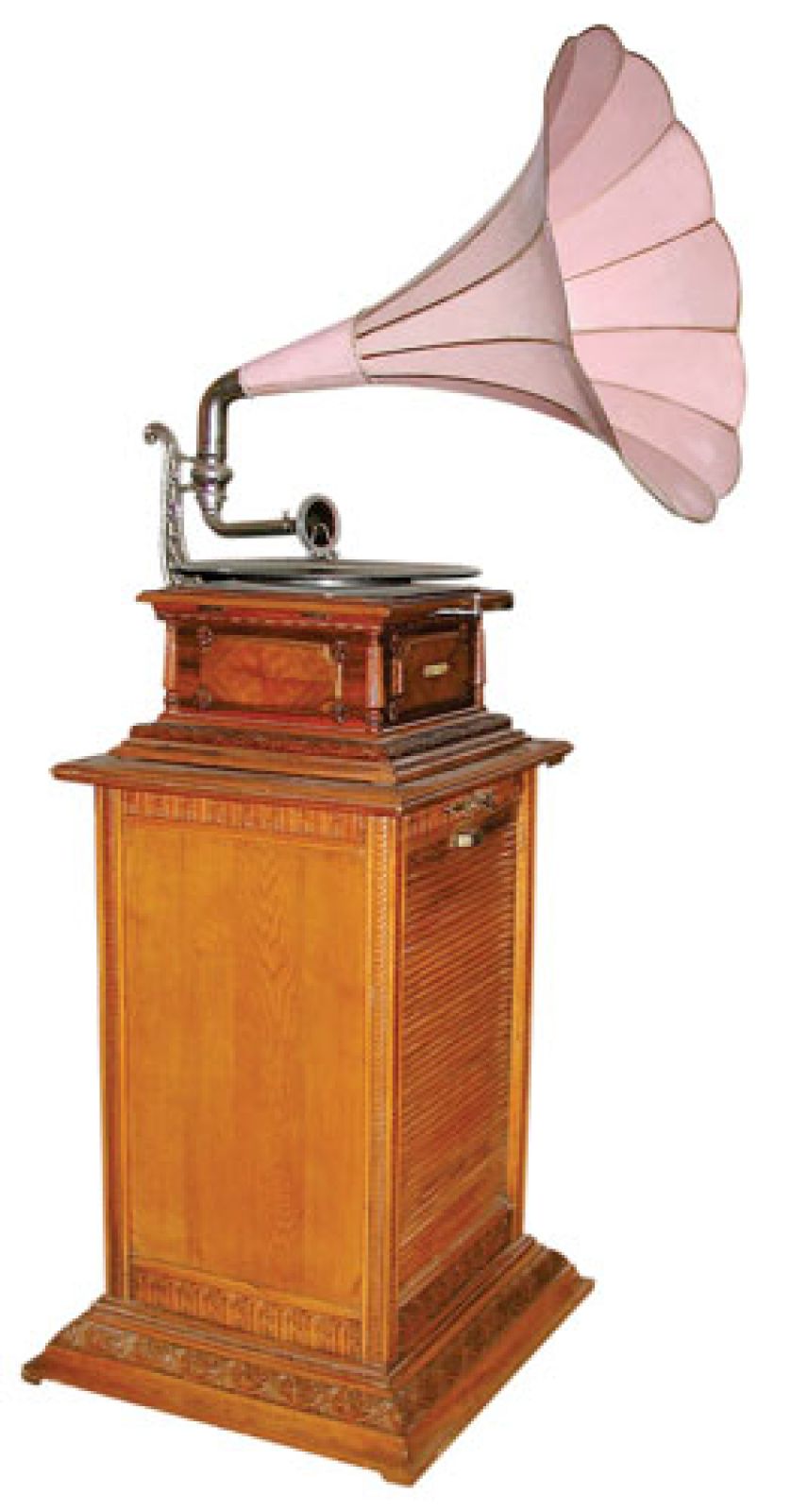 Na polskich sklepowych półkach gramofony i fonografy pojawiły się w 1899 roku. Urządzenia zdobiono w stylu art déco, secesji, intarsjowano skrzynki, a tuby złocono bądź wyginano w wymyślne kształty. Szansa na ich kupienie jest znikoma, bo żaden szanujący się kolekcjoner nie odda takiego cacka, choć wie, że w zamian mógłby zafundować sobie zestaw kina domowego najwyższej klasy.