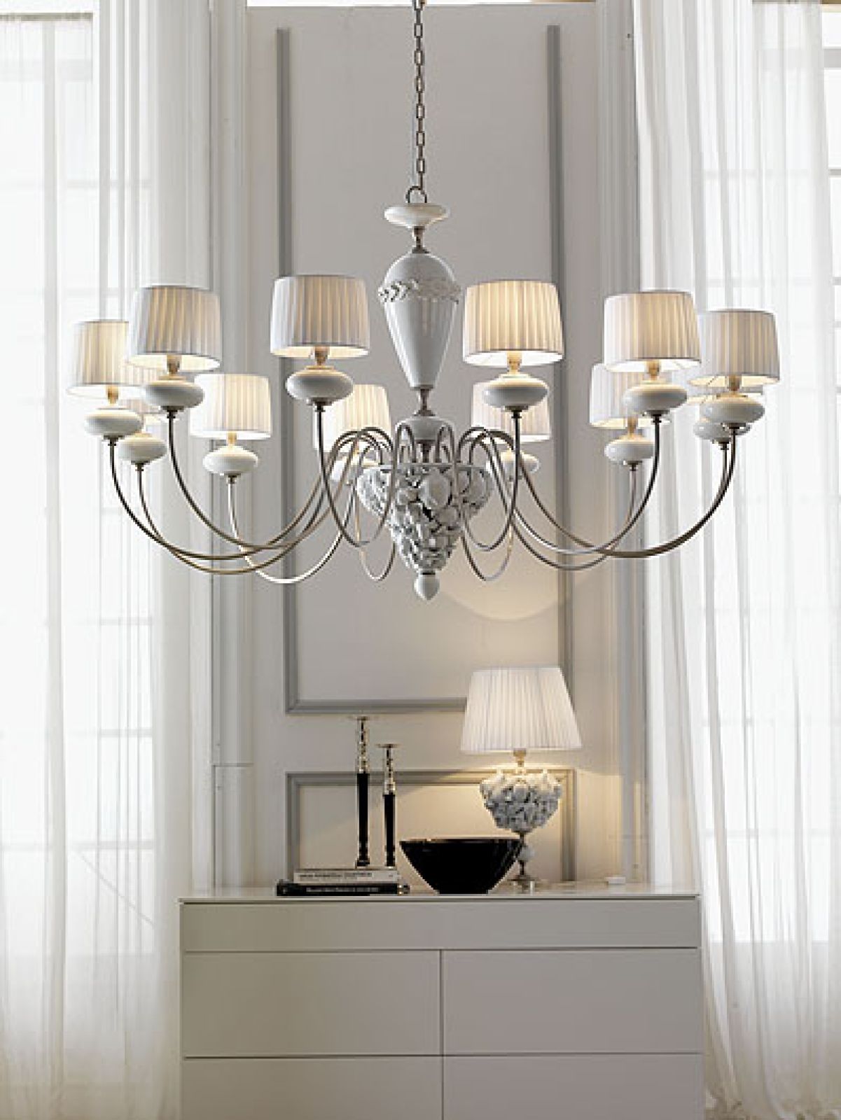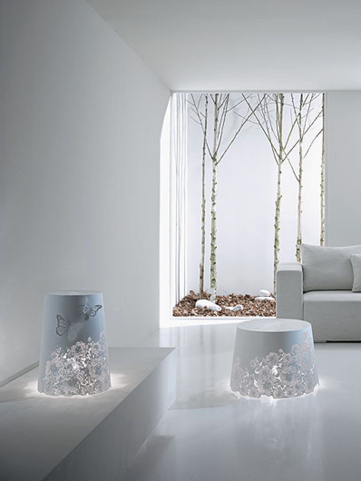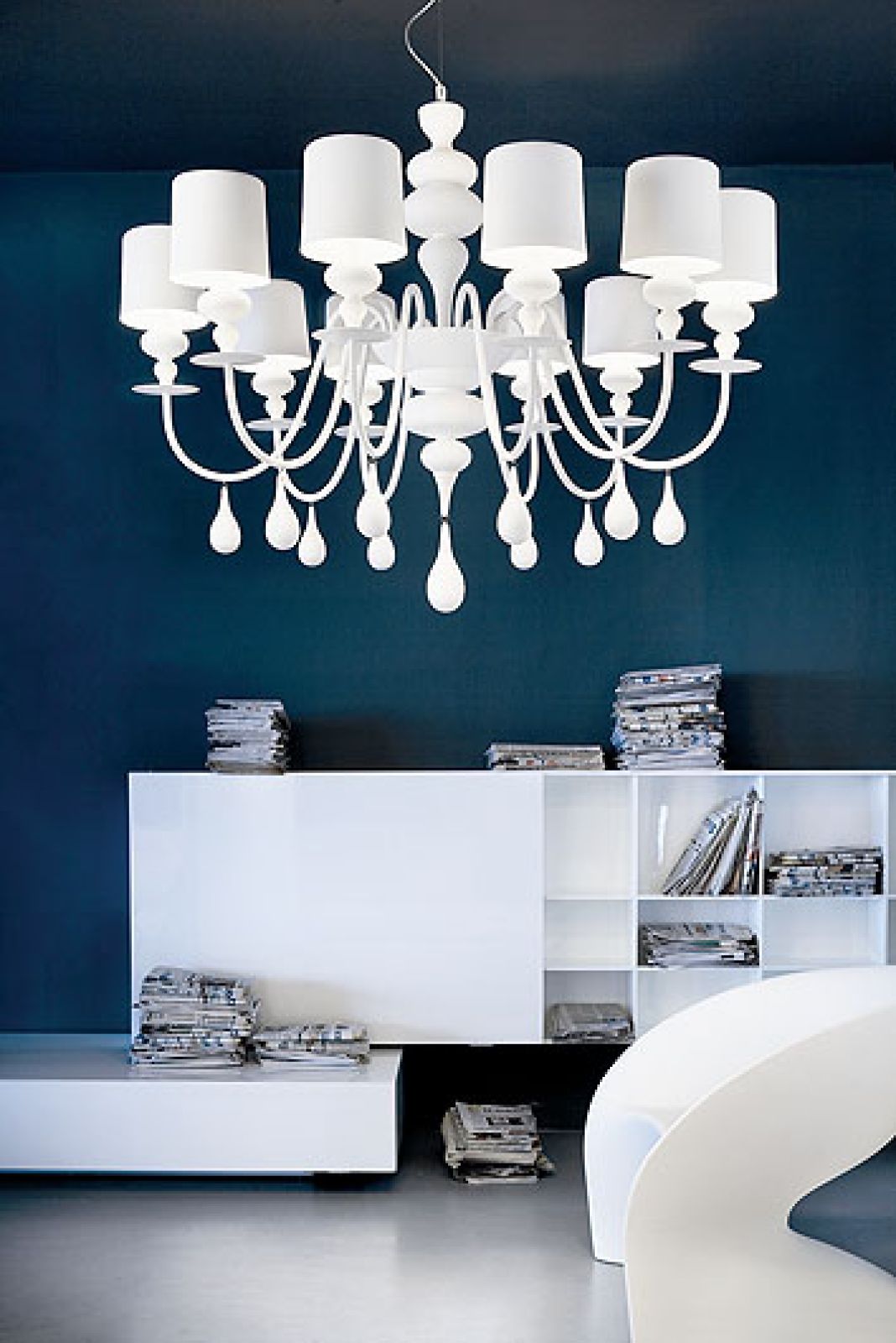 Wydawałoby się, że wszystko już było, ale projekty Ugoliniego zaskakują świeżością. Może to zasługa prostych form oraz nawiązań zarówno do klasyki (zamkowe kandelabry przerobił ze stylowych lamp w zabawne i lekkie), jak i wzorów etnicznych. Takie są abażury przypominające japońskie latarnie albo te z wycinankami na kloszach, które rzucają bajeczne cienie. Białe, czyste, surowe. Są jak błyszczące rzeźby, spychają na dalszy plan meble.