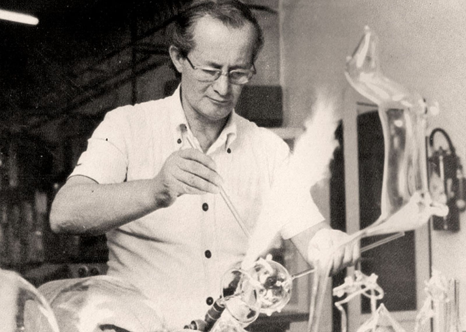A wyglądało to tak... Mistrz stał przy płonącym palniku, osłoniętym z jednej strony kawałkiem blachy. Precyzyjnie obracał nad nim szklaną kulkę nałożoną wcześniej na szklaną rurkę. Od czasu do czasu zdejmował ją znad płomienia i dmuchał zdecydowanie w rurkę, delikatnie nią obracając. Po chwili szkło znowu wracało nad ogień, aby złapać trochę temperatury, i znowu było formowane, nieraz wyciągane albo nacinane specjalnymi nożyczkami. Wymagało to niesłychanego wyczucia. Pewne wzory czy kształty musiały się przecież powtórzyć.