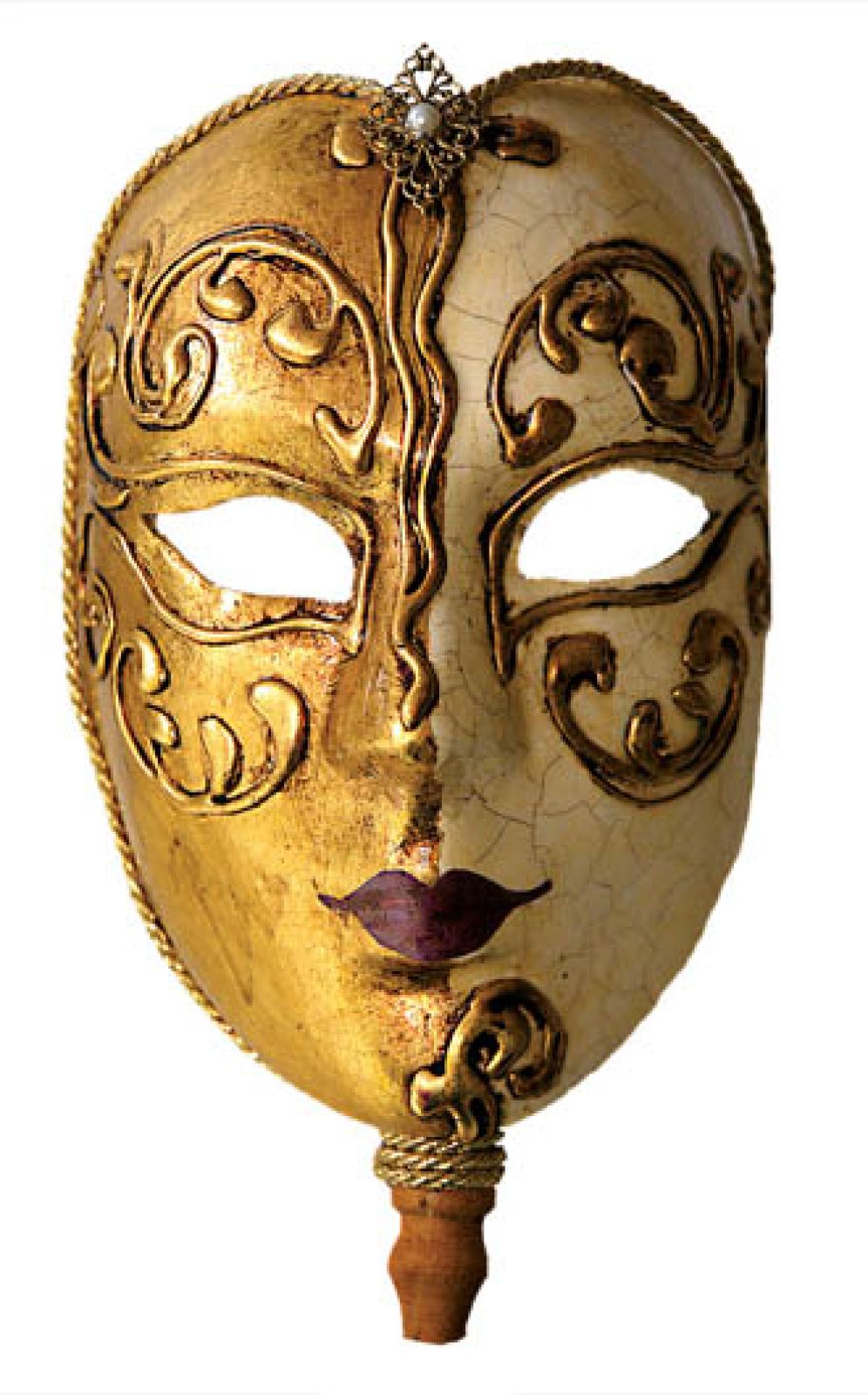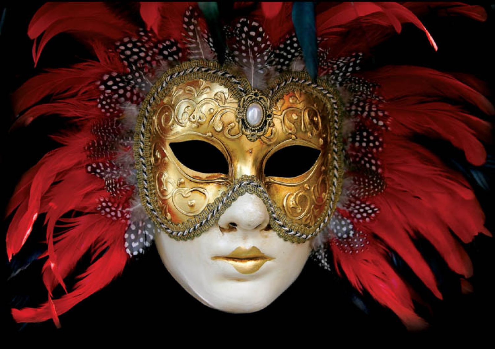 Maski przydawały się też podczas częstych na lagunie epidemii – w długim nosie ukryty był filtr nasączony roztworem soli, czosnku, rozmarynu i jałowca. Tyle na co dzień. Bo w czasie karnawału wenecjanie mieli w zanadrzu inne, bardziej dekoracyjne przebrania – udawali bohaterów XVI-wiecznej komedii dell’arte. Zielona maska z dużym nosem to szpetny sługa Brighella. Brązowa ze szczeciniastymi wąsami – skąpy kupiec Pantalone. Tę z nabitym na czole guzem nosił małostkowy Dottore, a elegancką z motywem domina – służka Colombina.