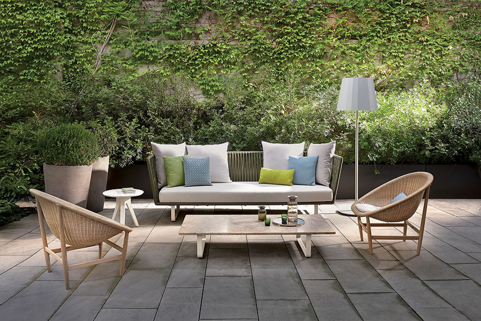Pierwsze już widać na reklamach: leżanka liść, fotele z metalu gięte jak ludwiki, altanki kryte strzechą albo sterty poduch (wodoodpornych), rzucone po prostu na trawnik. Wszystko wymyślone tak, że właściwie można nie zaglądać do domu.