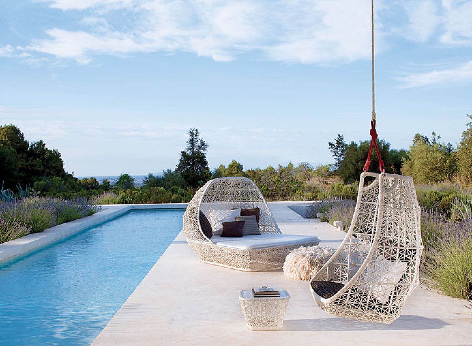 A przecież na tym nie koniec. W sklepach znajdziemy też różne dodatki: od pomocników i minikredensów, przy których przygotujemy podwieczorek, przez basenowe bary z hockerami, po dekoracje. – Na przykład dywan Kettal Objects Patricii Urquioli, który spokojnie może leżeć nad basenem i nikt się na nim nie poślizgnie. Niedawno pojawiło się też w Kettal oryginalne palenisko-grill, które przypomina klasyczny kominek – mówi Katarzyna Matyja. Czy z takimi meblami nie poczujemy się jak w mieszczańskim salonie?