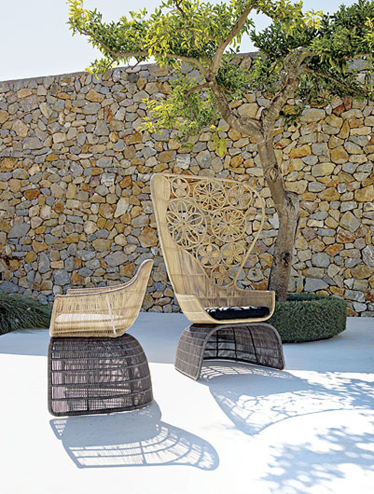 Wdzięczną inspirację znaleźli projektanci w tradycyjnych plecionkach i koronkach. Subtelne wzory z serwet czy koszyczków – powiększone kilka razy i wyplecione z bambusów i rattanów – zachwycają mistrzowskim detalem. Babcine niciane robótki podniesione do rangi sztuki.
