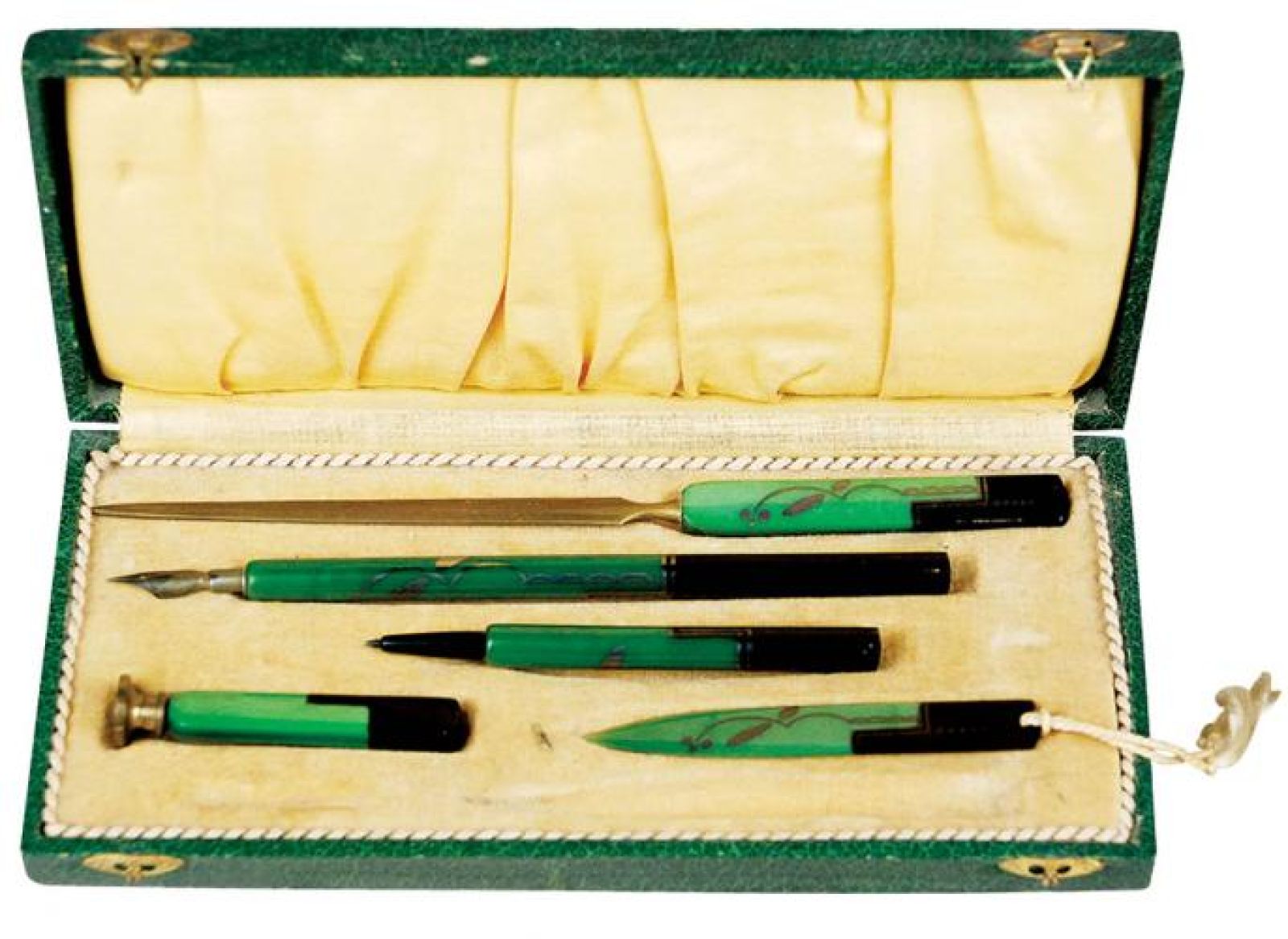 Łączyło ono pióro, łyżeczkę do czyszczenia uszu, pilnik do paznokci, wykałaczkę, strugaczkę do ołówków oraz właśnie nożyk do papieru. To jednak kuriozum, że zdecydowanie częściej otwieracze do listów – nawet te wielofunkcyjne – były elementem kompletu biurowego, razem z kałamarzem, bibularzem i obsadkami. W takim wypadku dla wszystkich przedmiotów obowiązywało jednakowe wzornictwo.