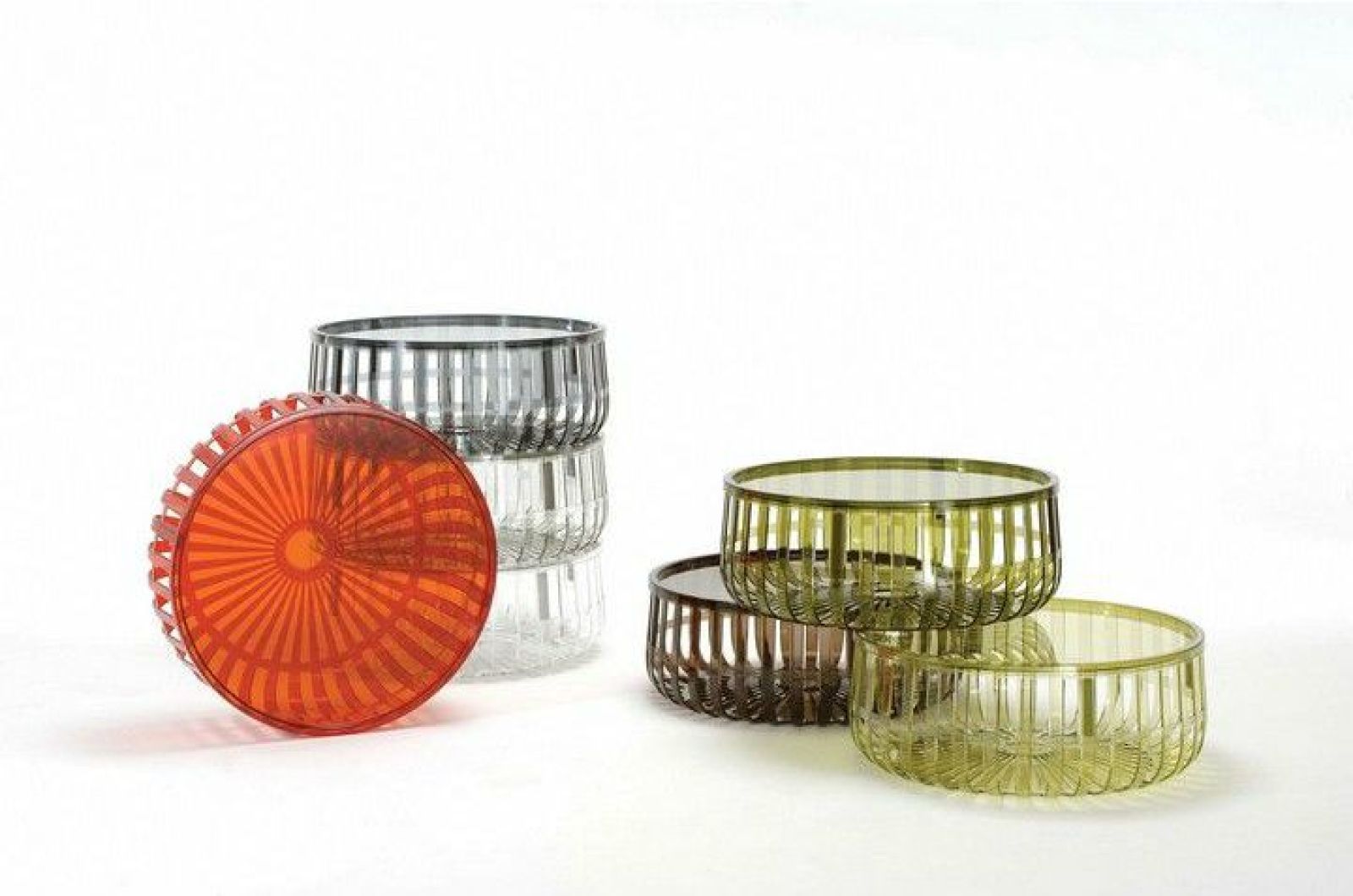 W salonie Kartella tradycjonaliści znajdą także rzeczy z innych materiałów: porcelanę (np. zastawę Marcela Wandersa), aluminium (wyciskarkę Starcka), stal szlachetną (patera na owoce Alessiego).
