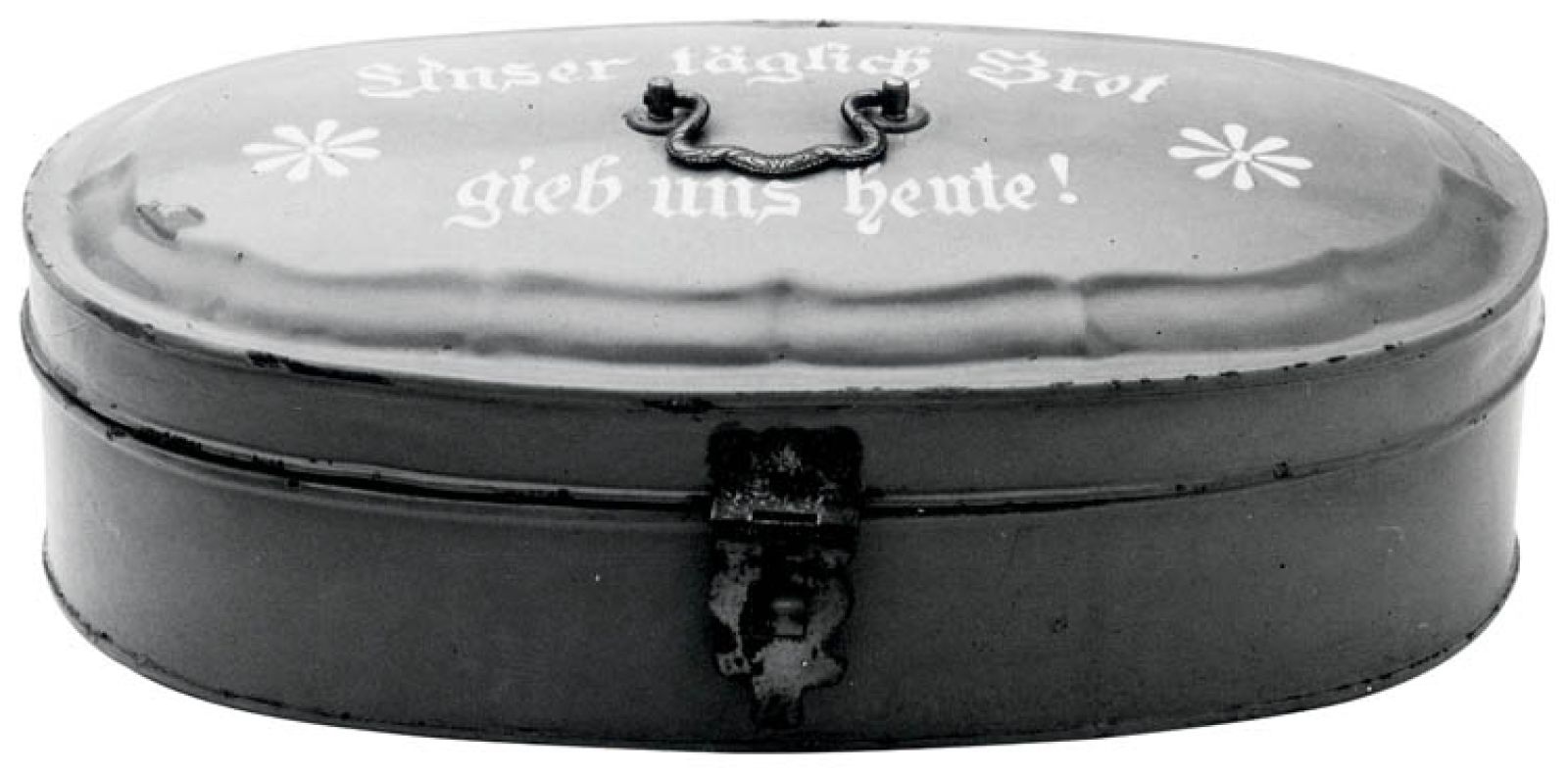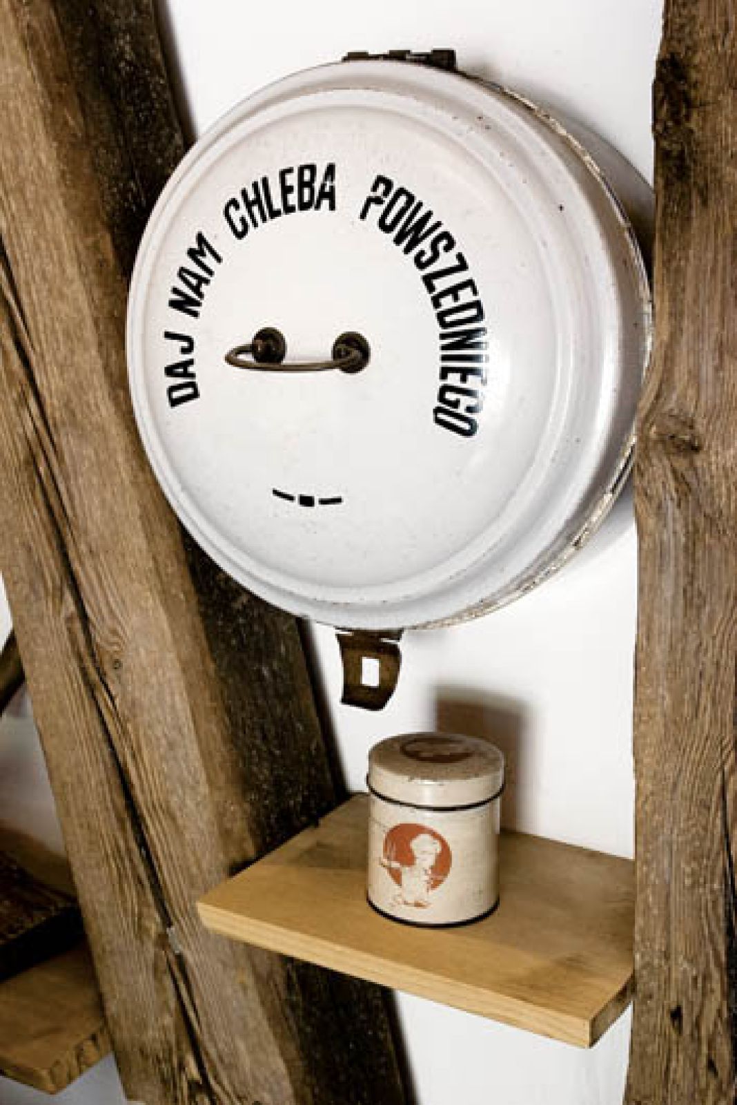 – Pojemniki robiono z drewna, metalu lub porcelany – opowiada pan Piotr. – Na ogół nie są datowane, trudno więc ustalić dokładny czas produkcji. Metalowe skrzynki albo puszki na chleb były zdobione kolorową emalią, bardzo często miały napis „chleb” lub z niemiecka „brot”. Popularne były też sentencje: „Unser taglich Brot gieb uns heute” („Chleba naszego powszedniego daj nam dzisiaj”). Z kolei chlebaki z porcelany były najczęściej malowane. Podobały się motywy związane z piekarstwem.