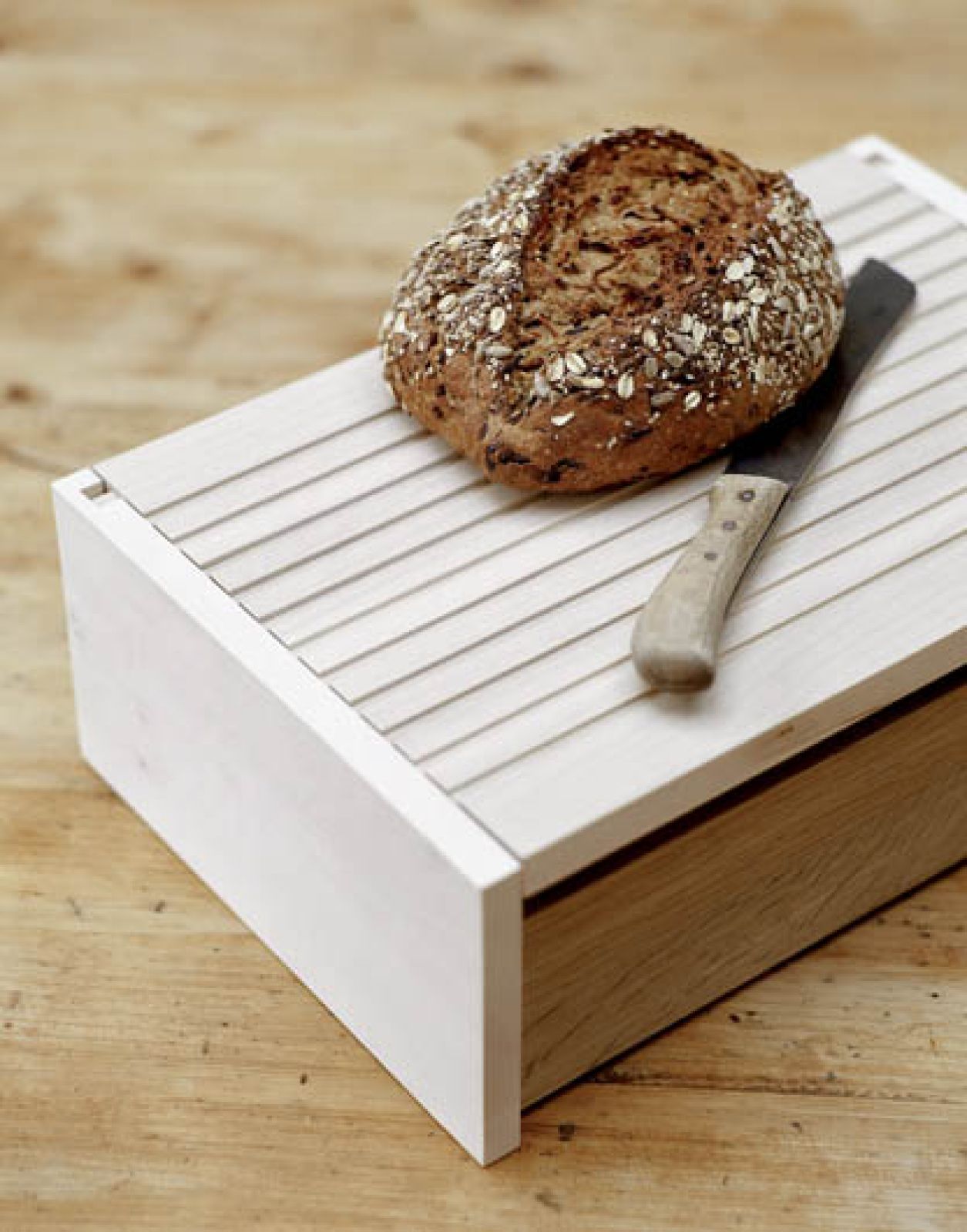Gotowy produkt przechowywano w specjalnym meblu. Według „Słownika języka polskiego” Samuela Bogumiła Lindego konstrukcję ową nazywano „chlebnicą”. Była to drewniana szafa zaopatrzona w metalowy, dziurkowany spód oraz wierzch, co zapewniało przepływ powietrza. Drzwi miały zamek, by do cennej zawartości nie dostały się łakomczuchy oraz powszechnie występujące w domach gryzonie. Innym sposobem trzymania chleba, popularnym głównie w Niemczech, było układanie go na specjalnych pałąkach wystających ze ściany pod powałą. Z szafy chleb trafiał prosto na stół, więc i ten traktowano wyjątkowo.