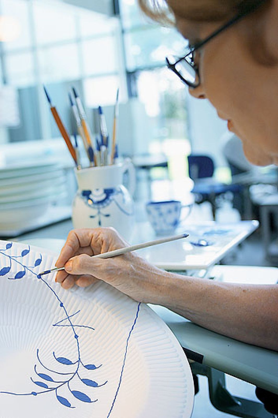 Flora Danica to niejedyna piękność Royal Copenhagen. Do historii przeszedł kobaltowy wzór Blue Fluted, który przypomina trochę słynny miśnieński Zwiebelmuster. Blue Fluted wyczarował Arnold Krog, malarz i architekt. Gdy został dyrektorem artystycznym, tchnął w fabrykę nowego ducha. Opracował techniki malarskie pod glazurą i wprowadził wzory przedstawiające krajobrazy. To dzięki niemu fabryka otworzyła sklepy z porcelaną w Paryżu, Londynie i Nowym Jorku.