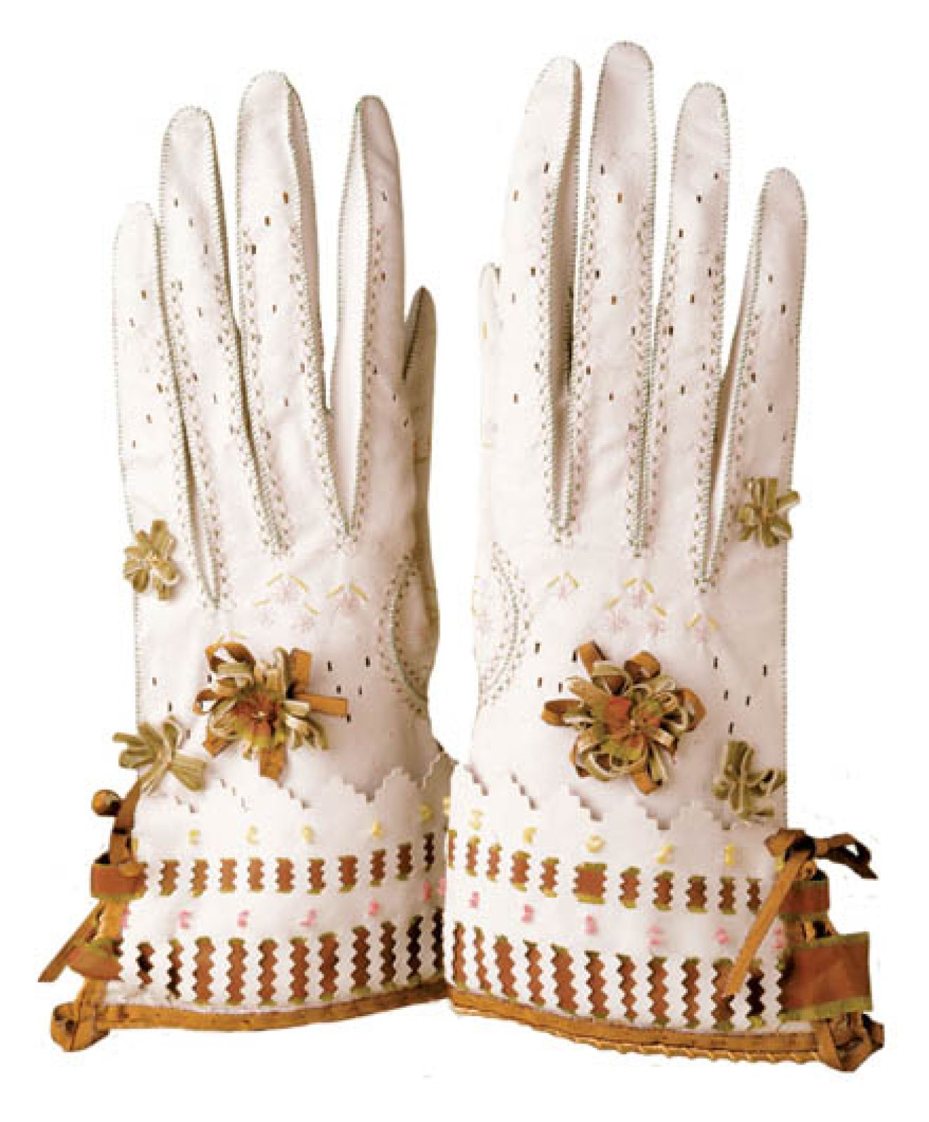 Oczywiście, starano się dopasować odcień tego dodatku do koloru sukni. Wzięcie miał zamsz, skórka kozia i jagnięca – tak cienkie i delikatne, że mieściły się w łupinie orzecha włoskiego!