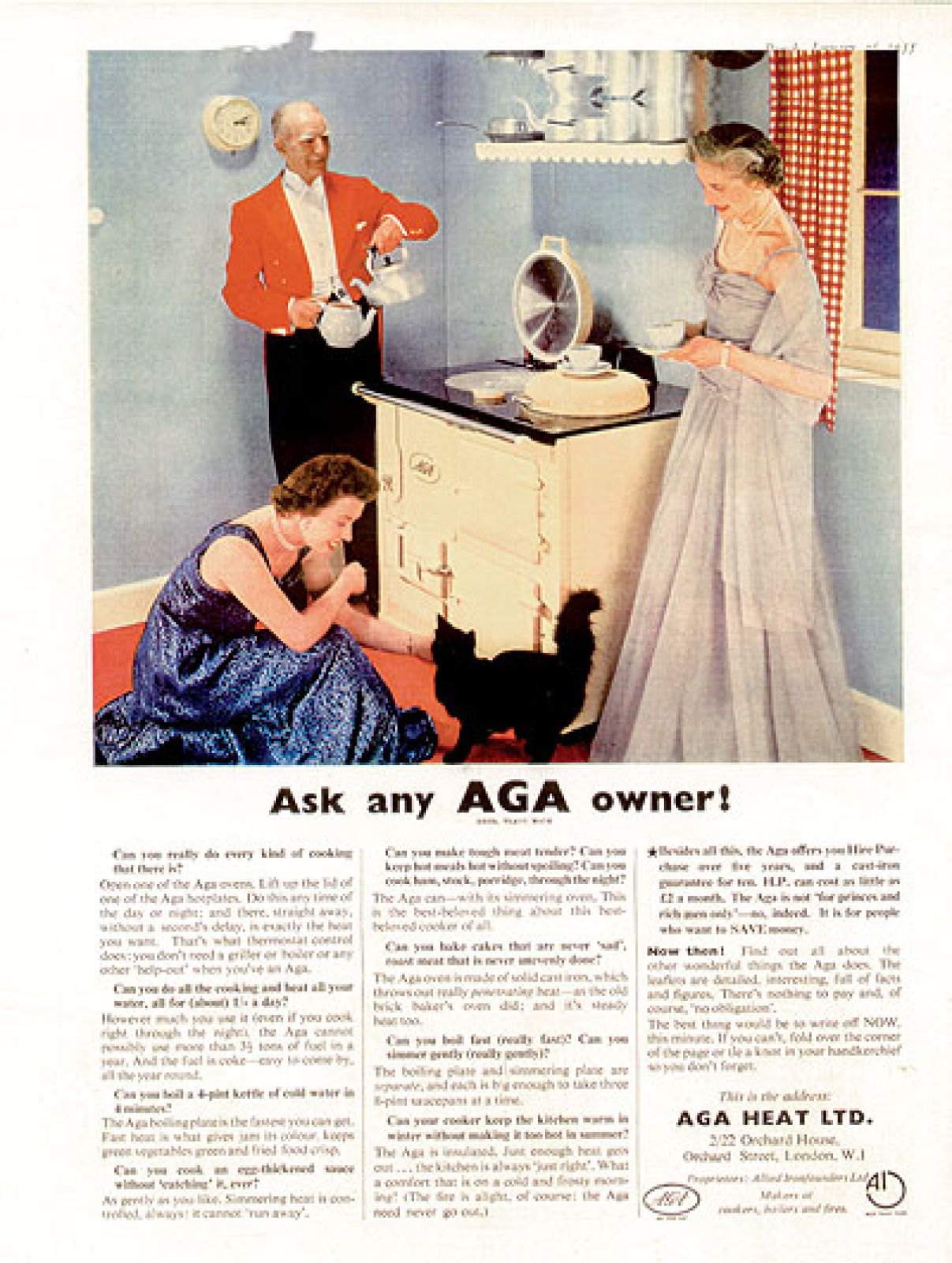 W połowie lat pięćdziesiątych AGA stała się najważniejszym sprzętem angielskich kuchni i nie bez kozery nazywano ją „sercem domu”. Po pierwsze, niczym prawdziwe serce, pracowała przez cały czas – z powodów praktycznych (długo się nagrzewała) kuchenki się nie wyłączało. Po drugie dawała ciepło, które w naturalny sposób wabiło domowników. Nic zatem dziwnego, że rodzina Archerów – bohaterowie kultowej angielskiej noweli radiowej – mieli w kuchni właśnie AGĘ. A ponieważ w radiowym studio nie dało się imitować dźwięku otwierania i zamykania drzwiczek od piekarnika, w siedzibie BBC firma zamontowała jeden egzemplarz.