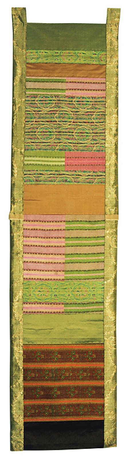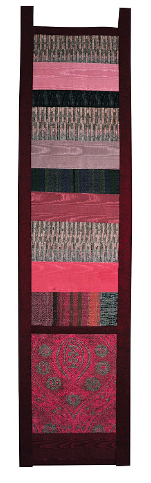 Oczywiście! To jest twórczy recycling. Na przedostatniej wystawie pokazałam prace zrobione na starych tkaninach Ładu. Były nadgniłe, koty się na nich gnieździły. Albo ten kawałek – to jest angielska okleina do kadłubów łodzi.