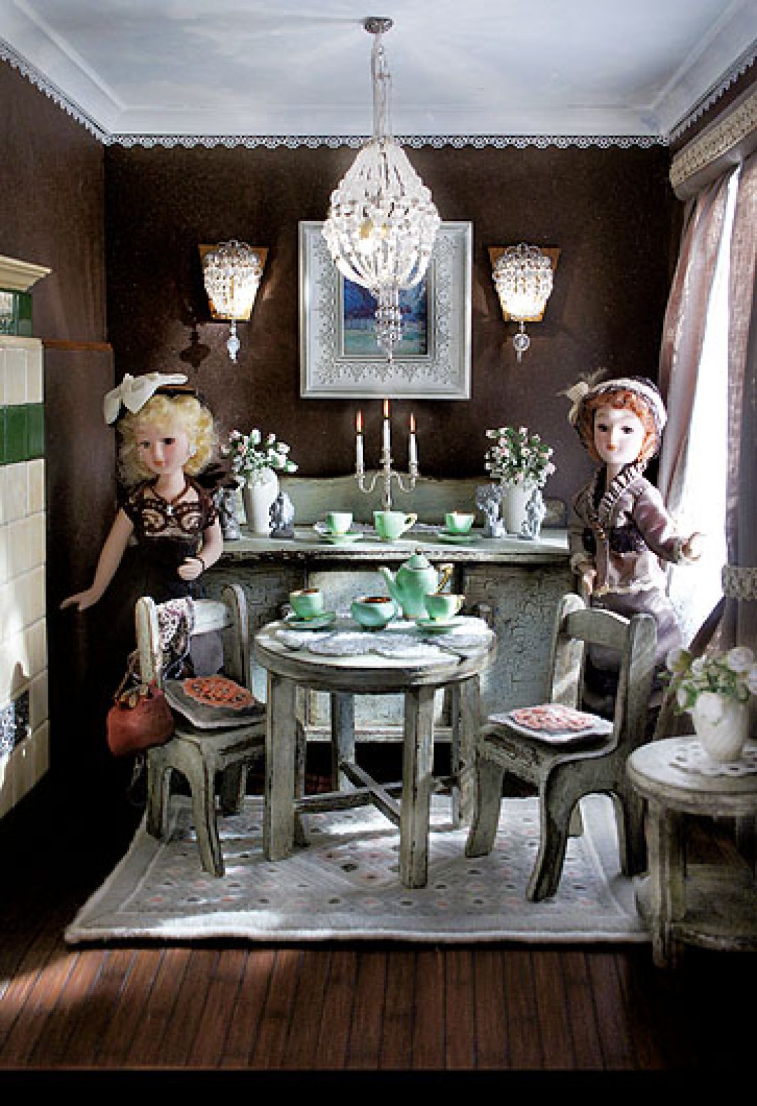 Panna Julia mieszka w kamienicy z lat 30. Lubi solidne, ręcznie malowane meble, ma słabość do kryształowych żyrandoli i bibelotów. Co tu dużo mówić – nieźle zagraciła dom. Wazoniki z kwiatami, koronkowe serwetki, haftowane poduszki, pudła ze skarbami i wszędzie porozrzucane damskie fatałaszki. Na sprzątanie przyjdzie czas, póki co plotkuje z przyjaciółką w saloniku, popijając herbatę z zielonej porcelany. Służąca, która krząta się po niewielkiej kuchni, za chwilę poda też ciasto. Nie byłoby w tym nic dziwnego, gdyby nie fakt, że ta urocza brunetka w trochę niemodnej sukni z plisami mierzy zaledwie 15 centymetrów i mieszka w domku dla lalek.